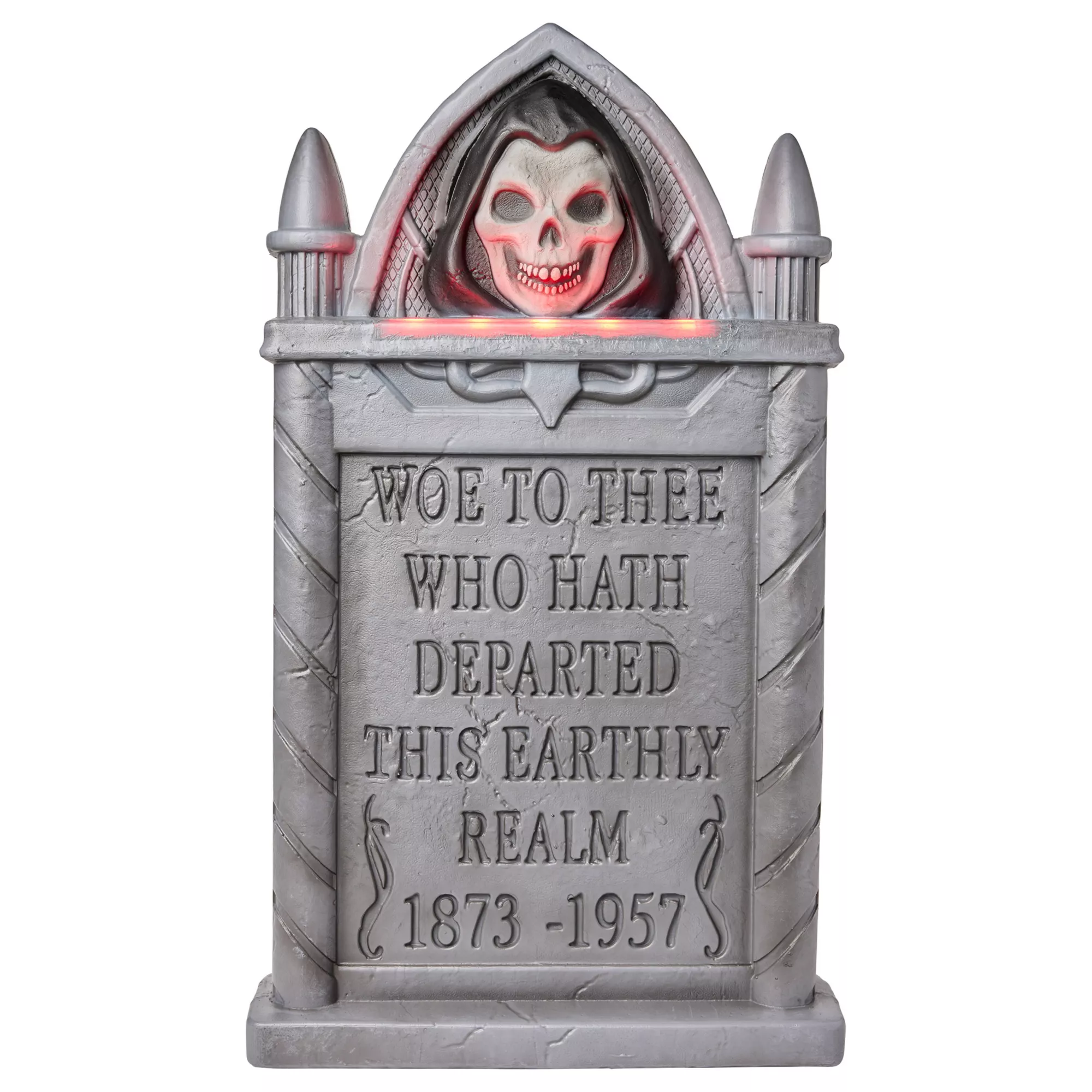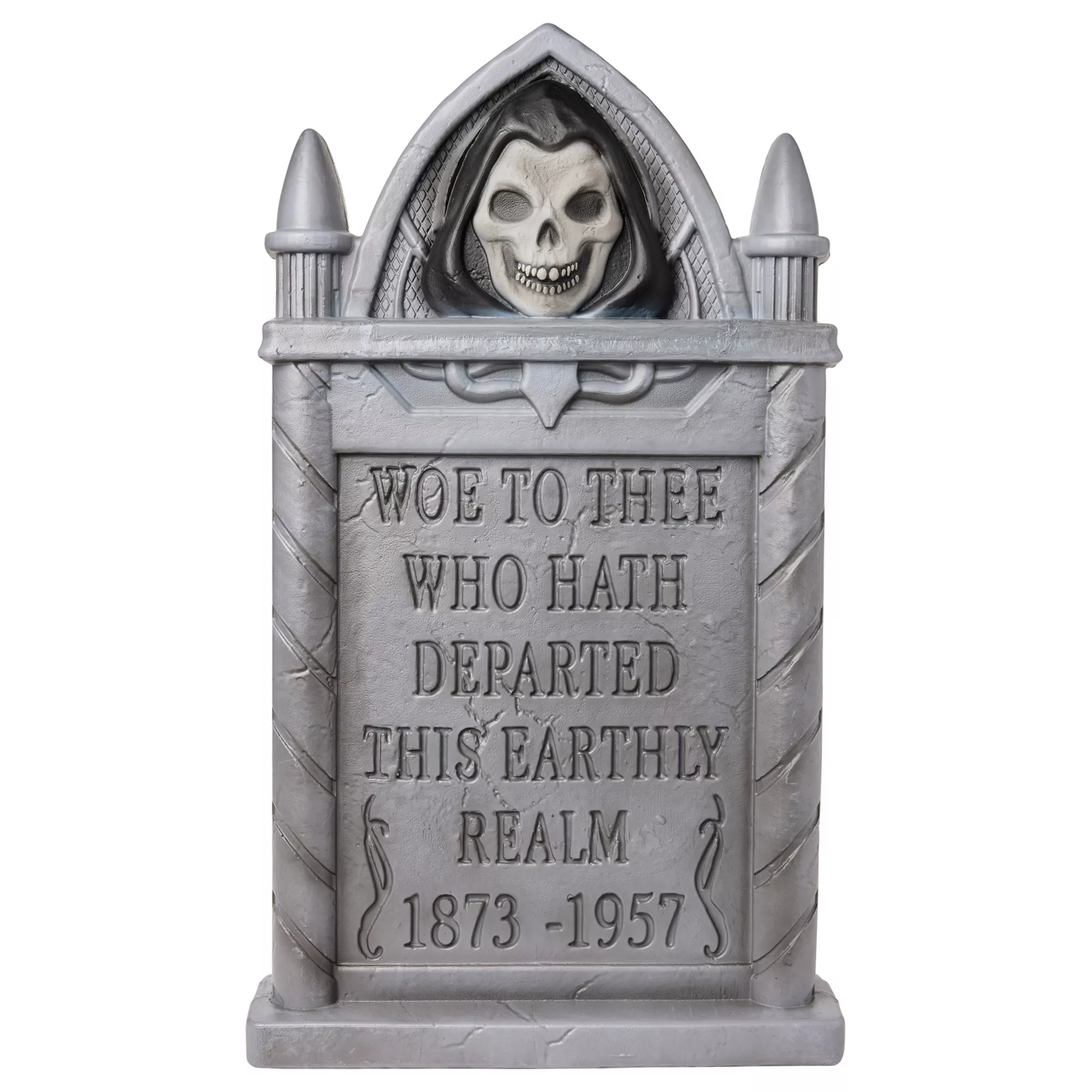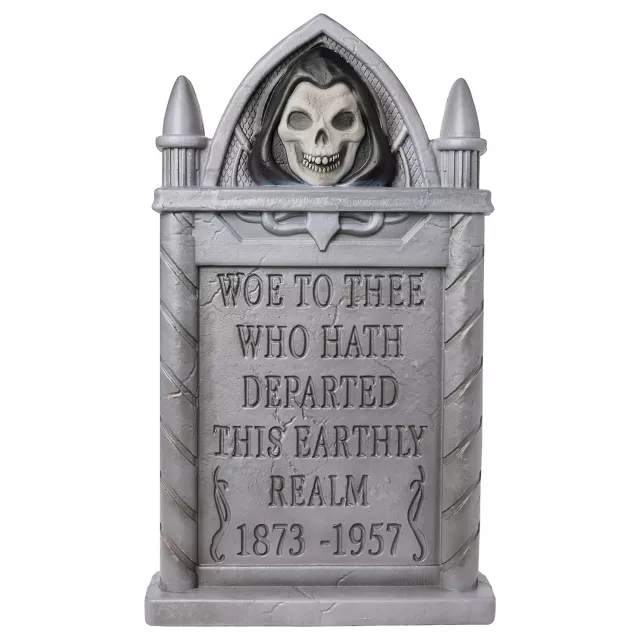 Feel free to go on break! This 24 Inch Woe To Thee Grim Reaper Animated Tombstone will do all the scaring for you. Just set it up in your front-yardg-grave-yard and have fun!