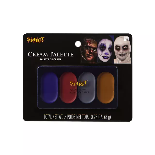 Complete your Halloween makeup look with this 4 Color Cream Makeup Palette. This 4-well palette features blue, red, grey, and gold makeup.