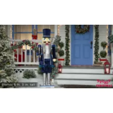 It’s the most wonderful time of the year! Bring the magic of the season home with this Collapsible Navy Blue Animated Nutcracker. Standing 5 feet 3 inches tall, this holiday icon is dressed in a velvety blue suit with a sparkling silver trim and carries a star wand. It's fully collapsible for easy setup, disassembly, and storage. Turn up the holiday cheer as it plays a rendition of “Jingle Bells,” while the mouth opens and closes. Whether placed by your tree, in an entryway, or as the centerpiece of your holiday party, this animated Nutcracker is sure to steal the show!