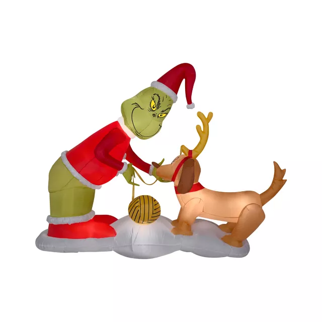 Decorate your yard for Christmas with this officially licensed The Grinch Who Stole Christmas inflatable! This light-up inflatable features the Grinch himself, and his beloved dog max for Christmas scene that is unlike the rest! Blow your neighborhood away!