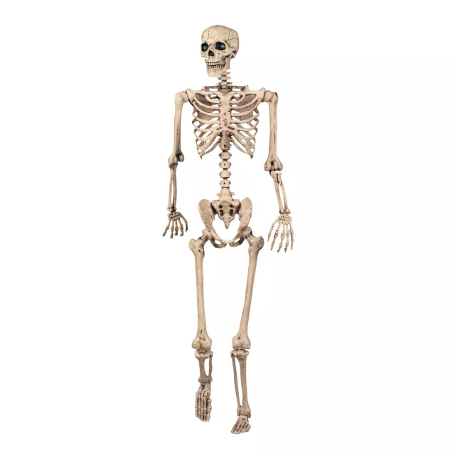 Add an authentic note to your Halloween decor when you place this life size Pose N Stay skeleton behind a door, by the fireplace or anywhere you want to add a spooky touch. Standing at 60 inches tall and 32.5 inches while sitting, this skeleton is perfect for your mad scientist lab, creepy crypt or haunted house. The realistic skeleton is for indoor use only but make no bones about it - this is one scary dude.