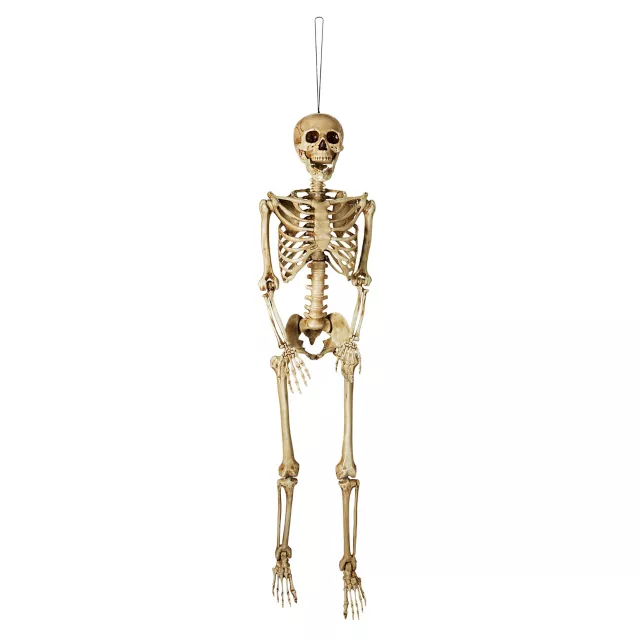 This poor soul has a bone to pick with you! If you're searching for the perfect addition to your haunted house, look no further than this hanging decayed skeleton. Featuring a hanging loop on the top of his head, hang him in your home and watch as trick-or-treaters scream their heads off! This skeleton can be positioned to sit and bend at the joints in any pose you like!