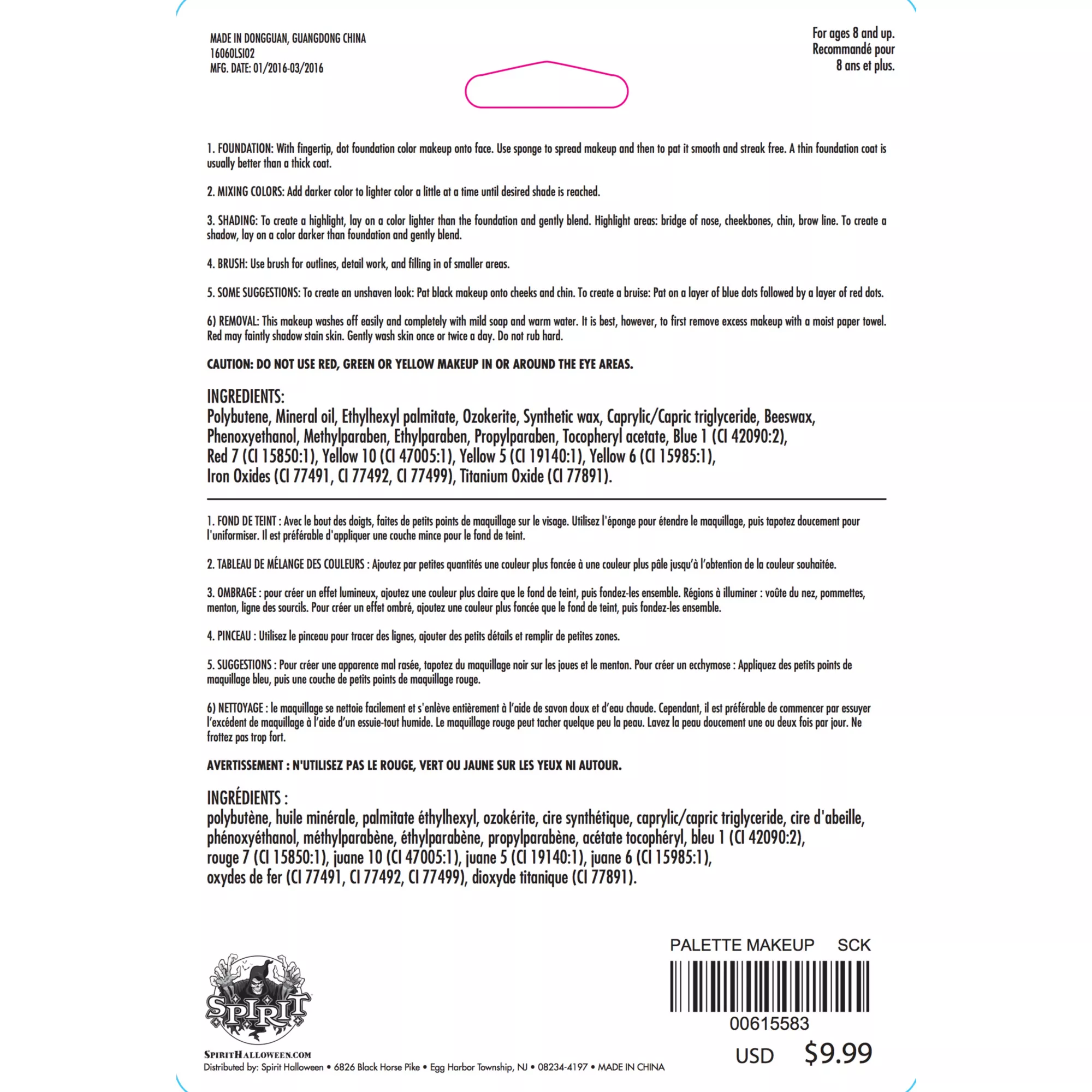 This complete Doctor Phil and Monsterella's Reel F/X Makeup Palette is a high-end, film quality, product ready to complement a thousand and one costumes from Ghouls, Ghosts and Monsters to daring Super Heroes.
