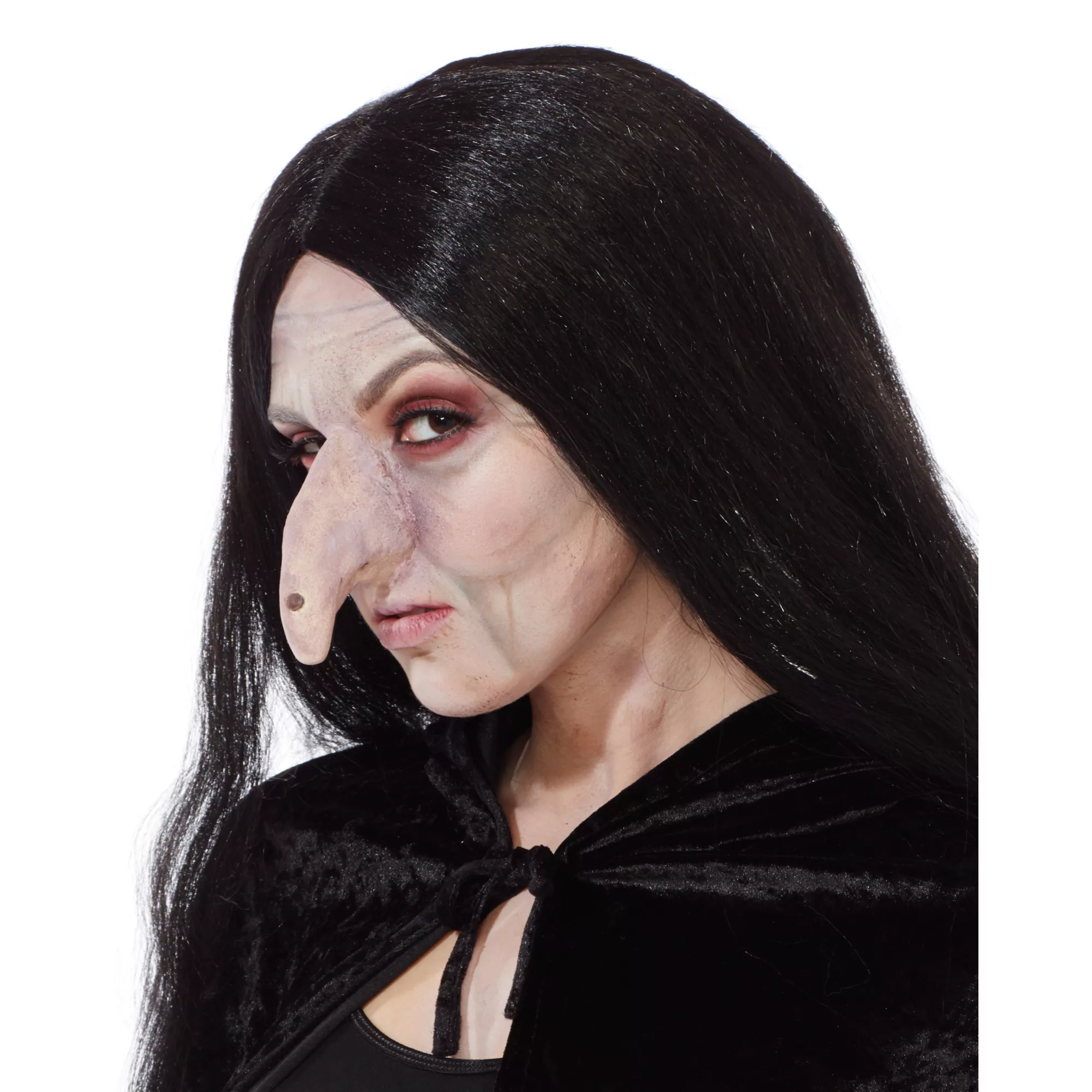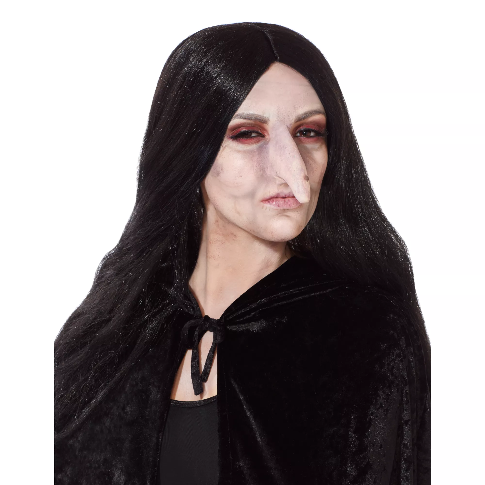 Something wicked this way comes, is it perhaps your infamous crooked nose? Ideal for that classic wicked witch, this lifelike latex prosthetic of a highly detailed crooked nose with mysterious wart that always spooks them all! Ready to cast yourspells? This long greyish nose with a big black wart easily attaches to your nose for the perfect witchy look.