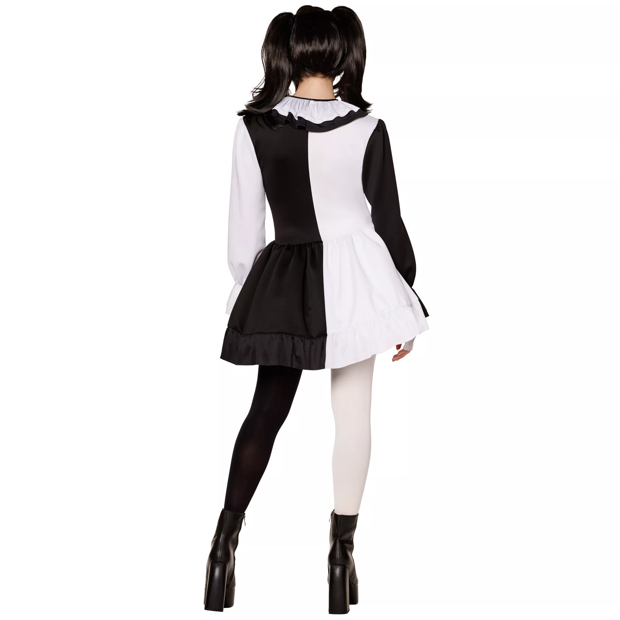 Have one of the most terrifying looks at the next costume party when you show up rocking this officially licensed Classic Art the Clown Dress Costume. With this clown costume on, you'll be ready to get into plenty of terrifying clown business. Use the included black and white dress, collar, gloves, headband, tights and sunglasses to transform into the infamous Art the Clown and prepare for the screams!