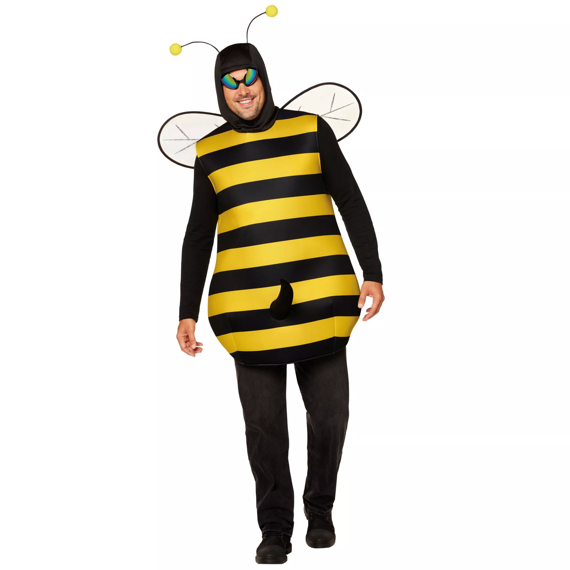 It's time to talk about the birds and the bees - especially the bees. This adult bee stinger costume includes an easy-to-wear bee costume with a humorously placed front stinger. Bee wings and glasses complete this (bee)autiful look!