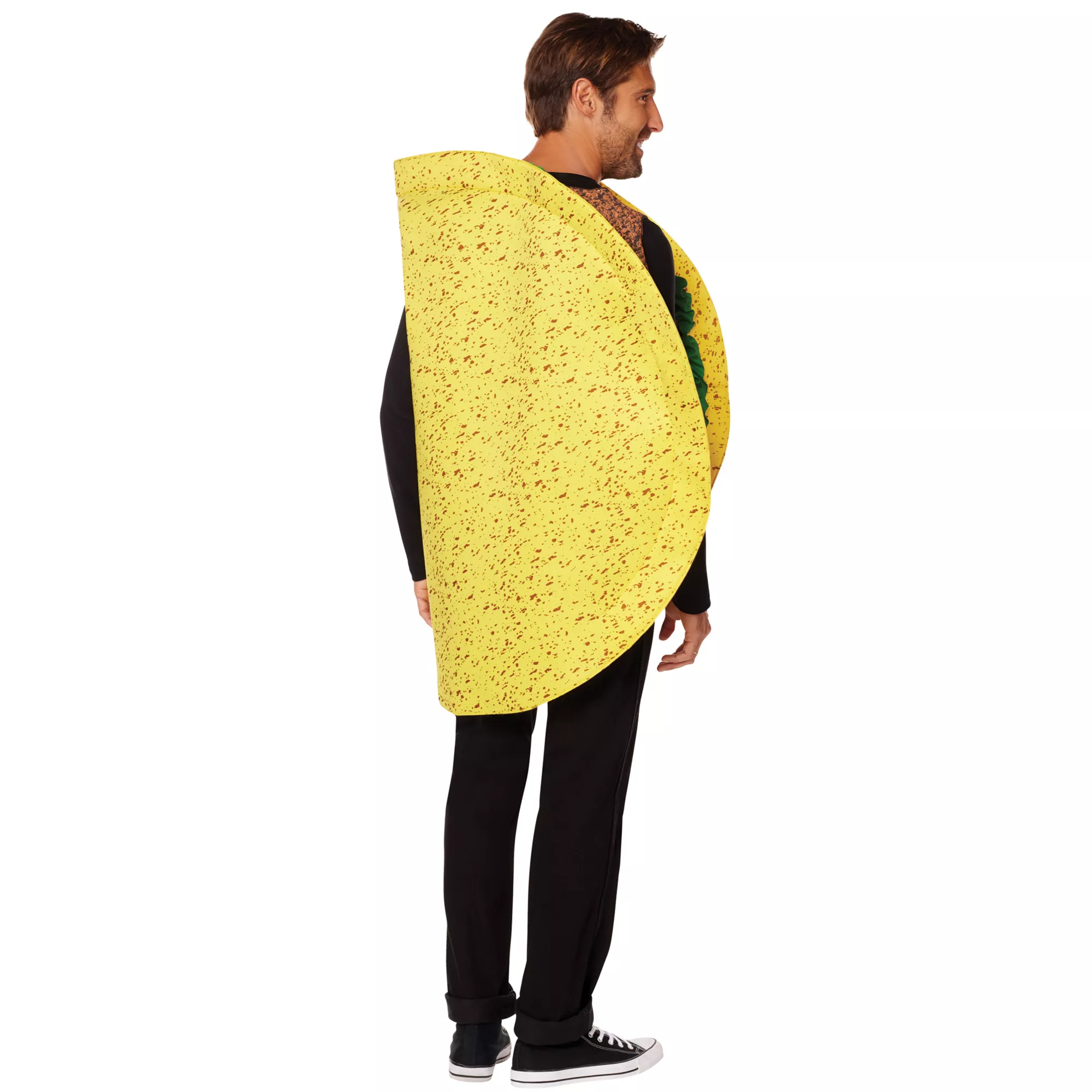 Be the life and the beef of the party with this fun taco costume! This costume looks like a hard shell taco with beef and lettuce, and is sure to crack a laugh at any fiesta!