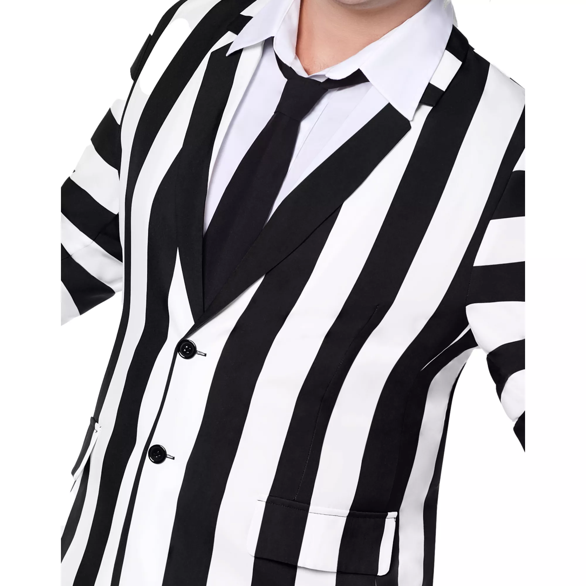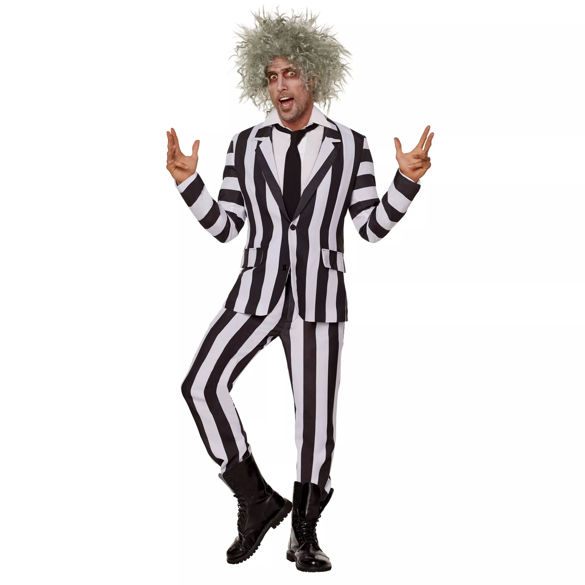 Everyone will instantly recognize you're the infamous Beetlejuice when you decide to dress up in this officially licensed Adult Beetlejuice Striped Suit. Once you slip into this suit you'll look like you've just come off of the screen! You'll love dressing up as your favorite character with this costume that features a striped suit, pants, and a tie.