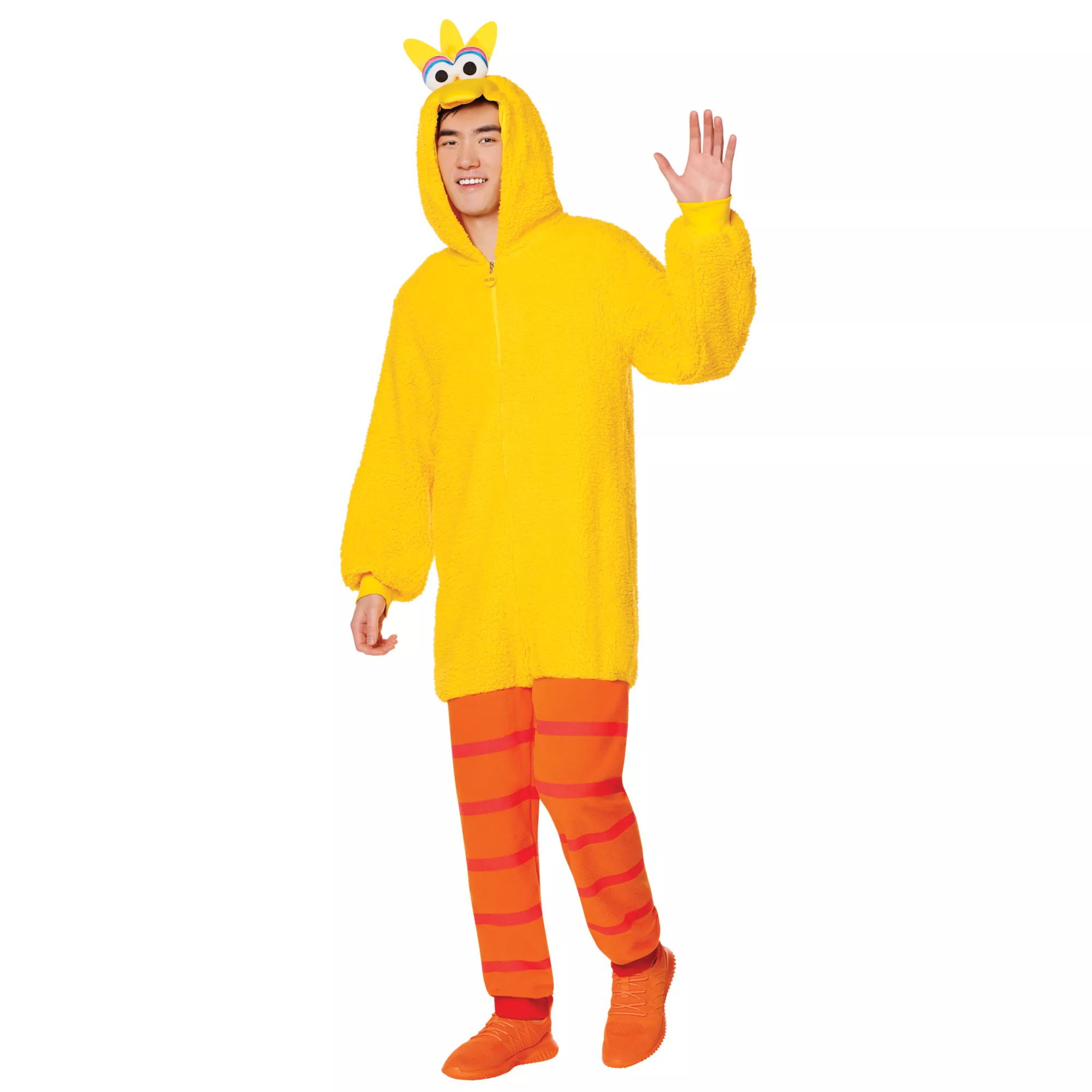 Capture the joy of Sesame Street in this Big Bird costume! This zip-up costume features Big Bird's signature yellow body and orange legs. With a delightfully fuzzy bodice, this Big Bird costume is soft to the touch. An attached hood features Big Bird's familiar eyes and beak. When you wear this Big Bird costume, it's sure to be a sunny day.