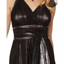 This beautiful dress is the perfect starter piece to your Halloween costume. With so many wearing options, you’ll be able to complete every look you’ve ever dreamed of! This reversible black dress is solid on one side and shiny on the other, making it the perfect base for a witch, a fallen angel, and so much more. Get ready to stand out in every crowd with this high-fashion dress on Halloween night!