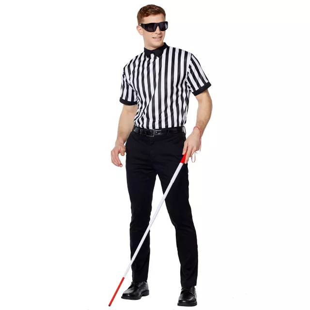 “The ref must have been blind to make a call like that!” Bring this expression to life this Halloween with this blind referee adult Halloween costume. Suited up in an official striped shirt, sunglasses, and walking stick, you’ll win laughs as you let your team win points. You make the call!