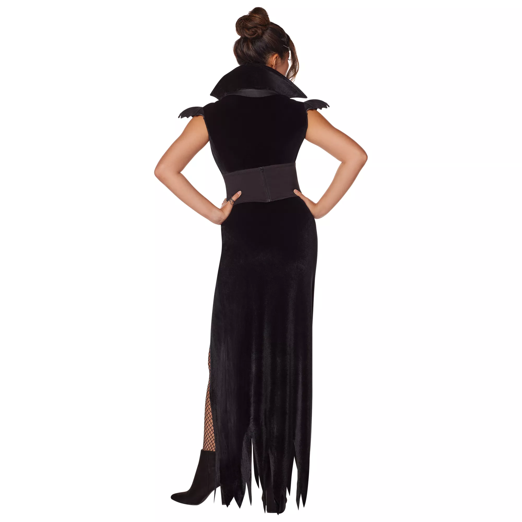 Become a bloodthirsty nightcrawler when you put on this incredible vampire costume! Featuring a gothic-style dress, a vest with an attached collar, a choker and a headband, this costume is sure to turn heads at your Halloween party.