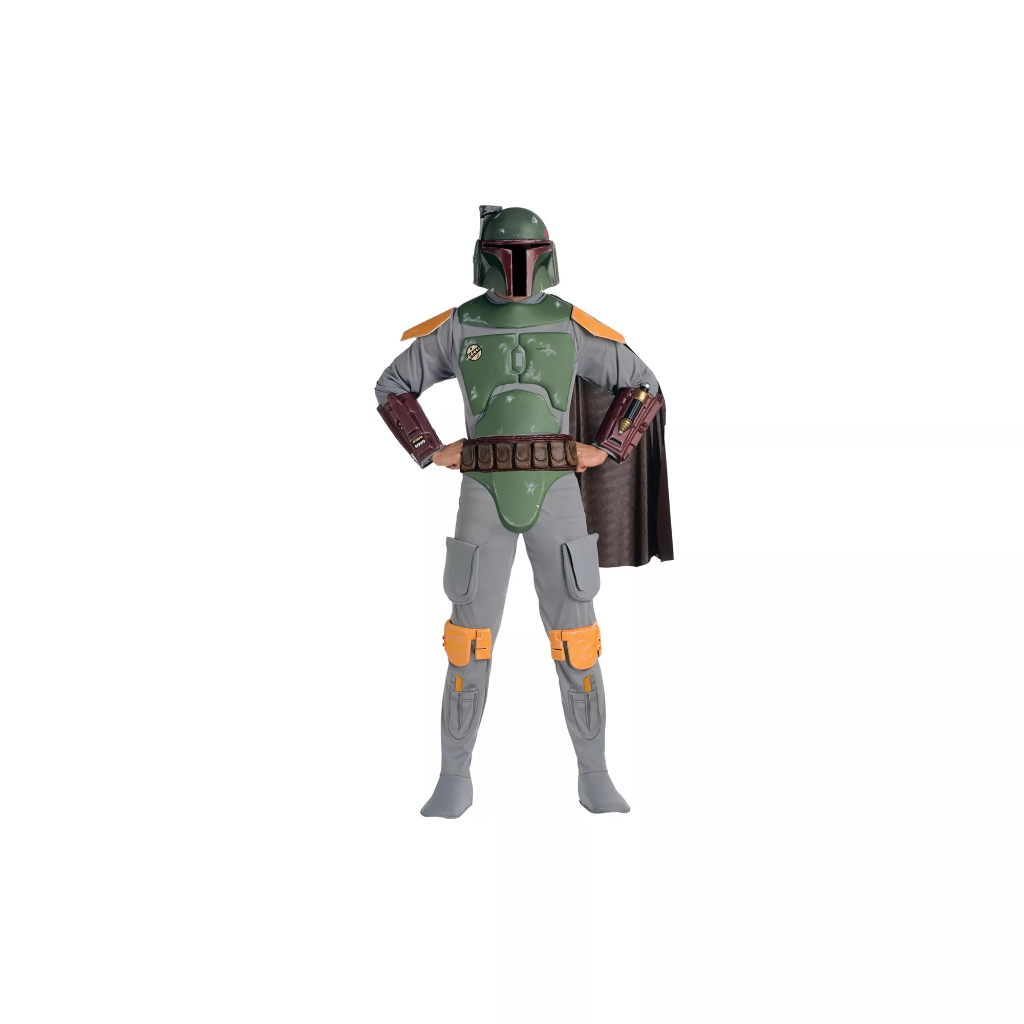 Let your intentions be true and hunt for Han Solo when you wear the officially licensed Star Wars Boba Fett deluxe adult costume and get what you want this Halloween. The gray jumpsuit features tan molded armor pieces and comes complete with a cape and a two-piece character helmet.