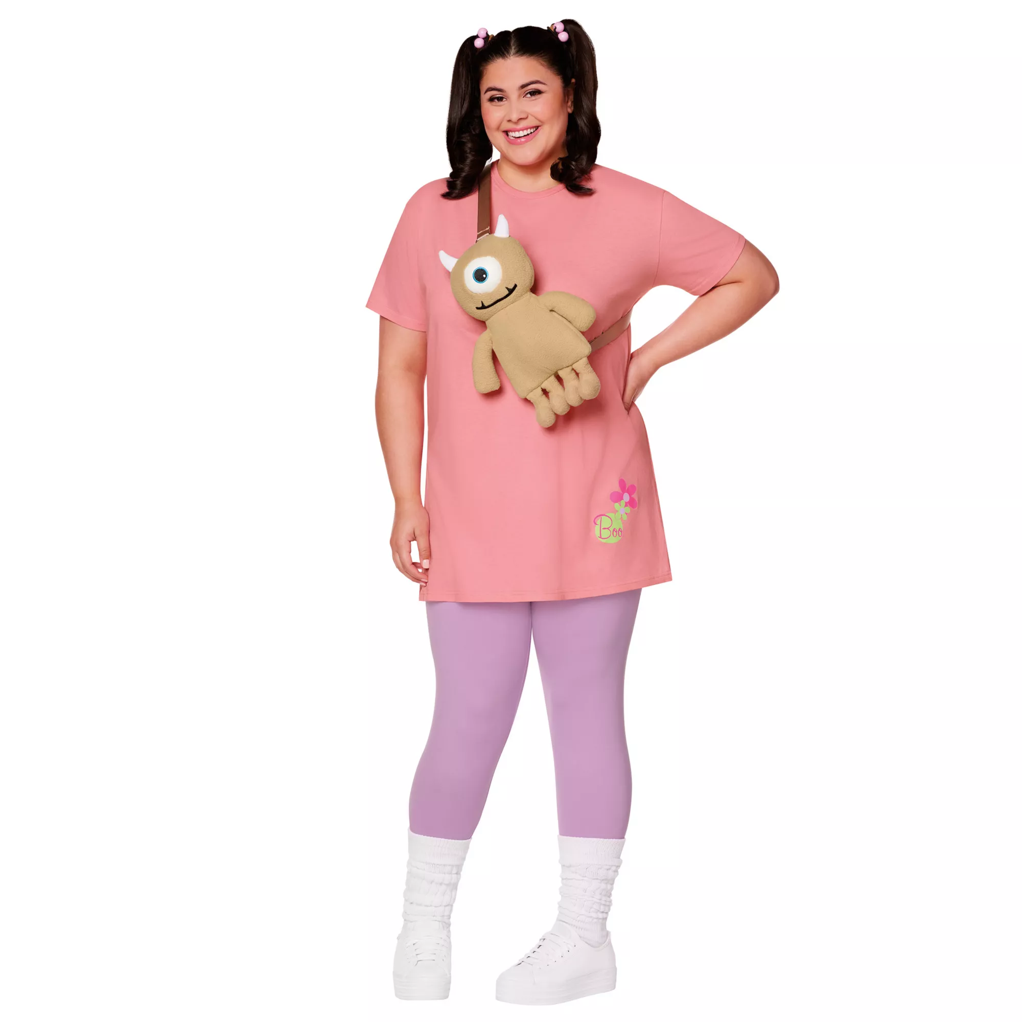 Look just as cute and adorable as Boo this Halloween when you wear this officially licensed Boo Costume! Any fan of Monsters Inc. will instantly be able to recognize you dressed as this fan-favorite character from the film with the included pink t shirt, purple leggings, and monster doll crossbody bag accessory. Find some friends to dress up as Mike and Sully and you'll have the perfect trio costume this Halloween.