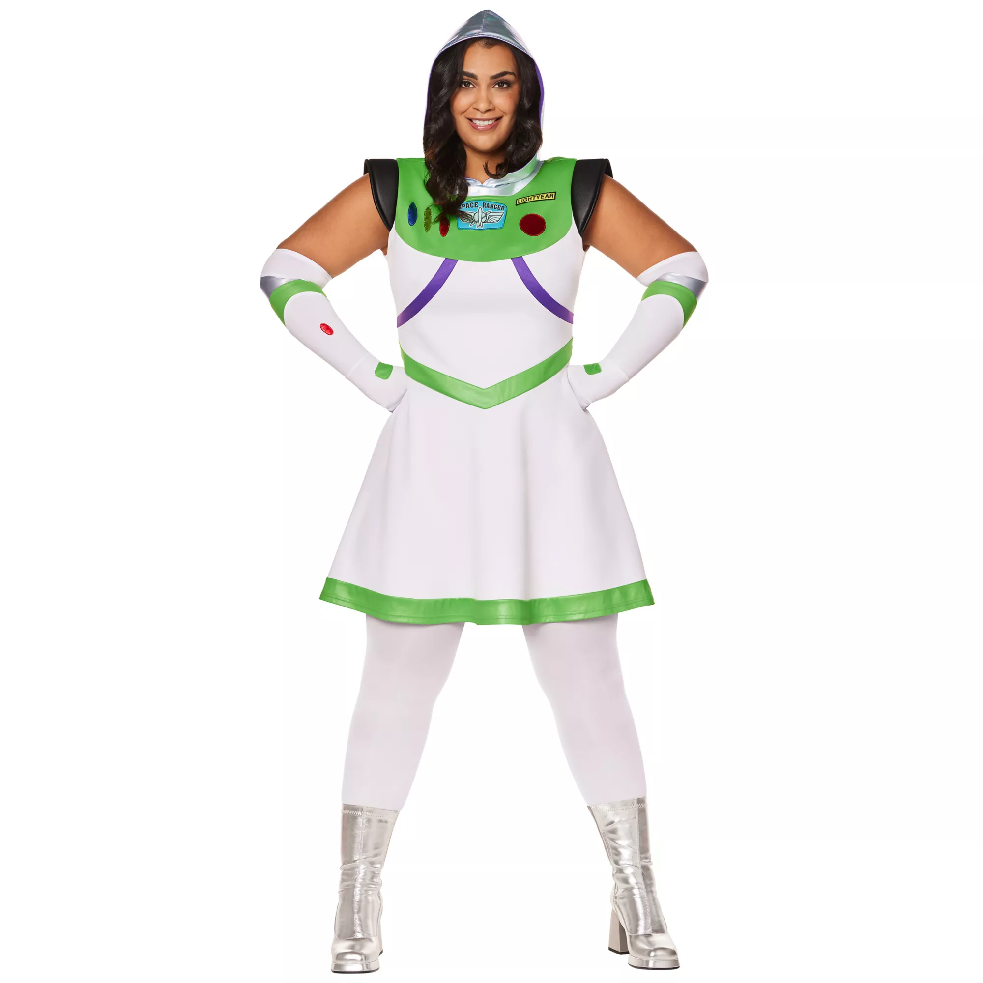 Elevate your Halloween style "to infinity and beyond" when you wear this officially licensed Buzz Lightyear costume! Featuring a dress that looks exactly like Buzz's signature space suit and a pair of gloves, this costume will bring your favorite movie to life.