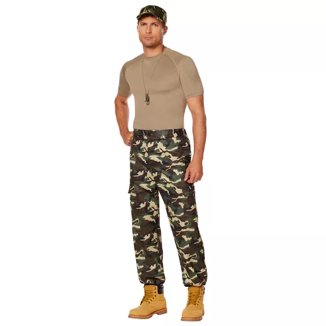 Be a hero this Halloween when you wear this awesome cadet costume kit! Featuring a camo hat, matching pants, and a dog tag necklace, this kit provides everything you need to become the ultimate soldier.