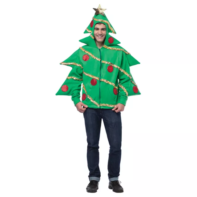 Everyone will be looking for the presents under you this holiday season when you wear the Christmas Tree Hoodie. This super festive tree hoodie features glittering ornaments and ribbons and a irresistible branch shaped hood with shining star.
