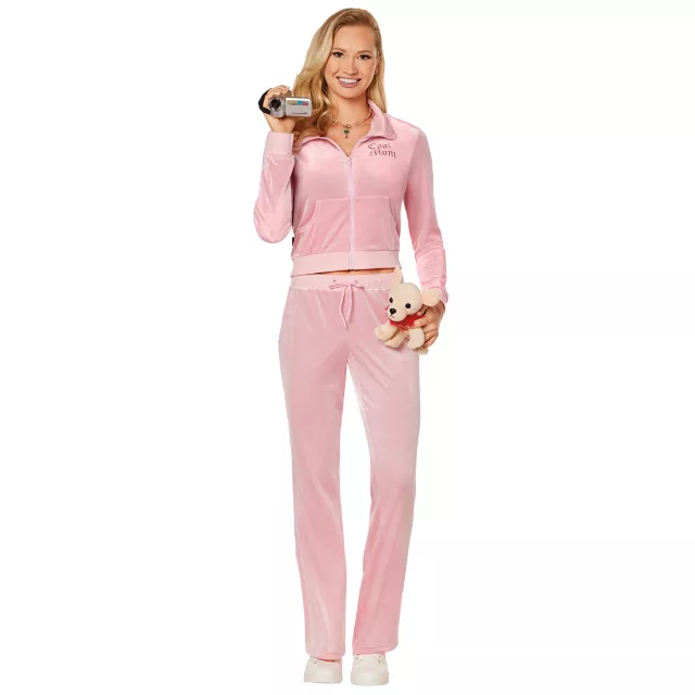 You're not a regular mom! You're a COOL mom. This Mean Girls costume features a zip-up cropped hoodie with "Cool Mom" fashioned out of rhinestones on the chest. Matching plush pink pants and an adorable dog prop complete the look. Just remember - there are NO rules in your house.