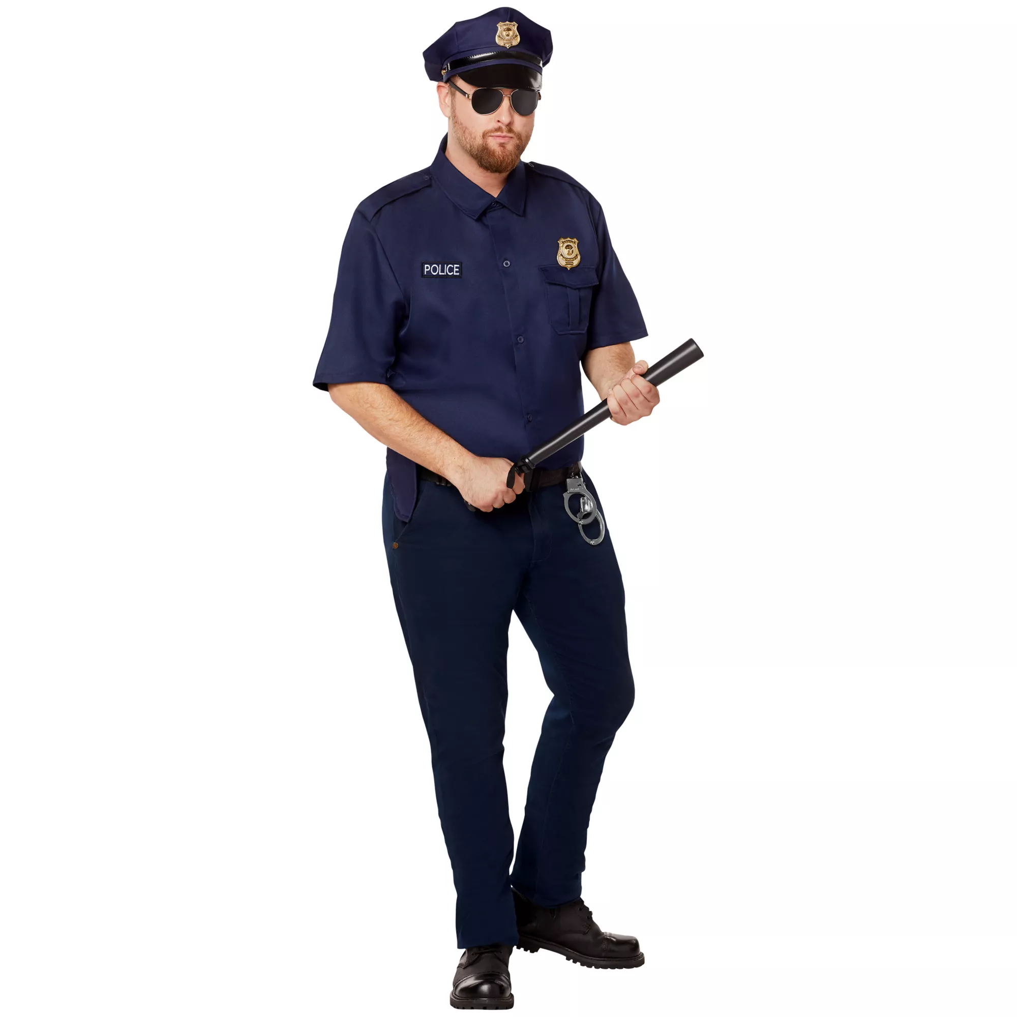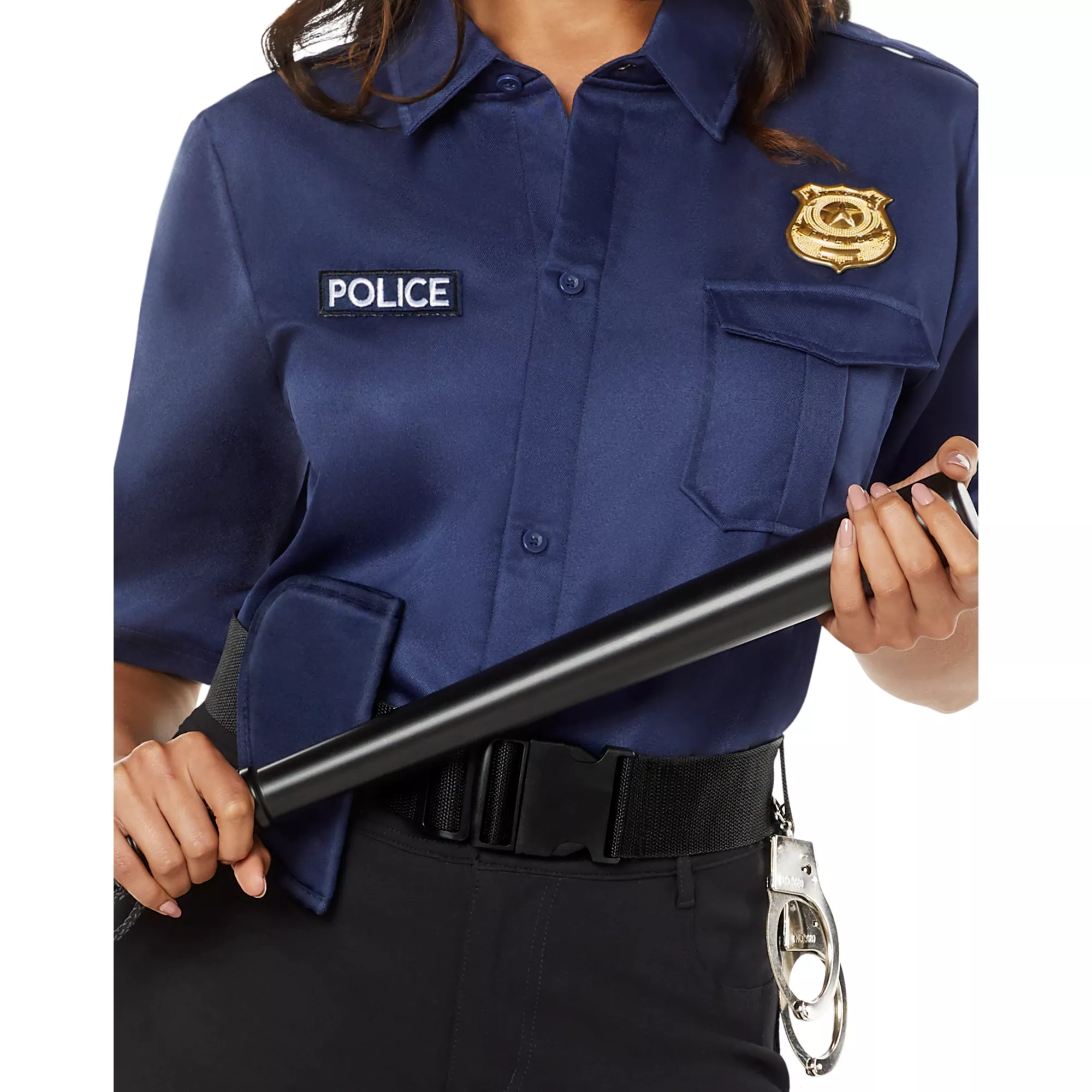You'll be laying down the law in no time at all when you dress up in this cop costume kit! The included shirt, hat, belt, and badges will make everyone think twice before they act a fool!