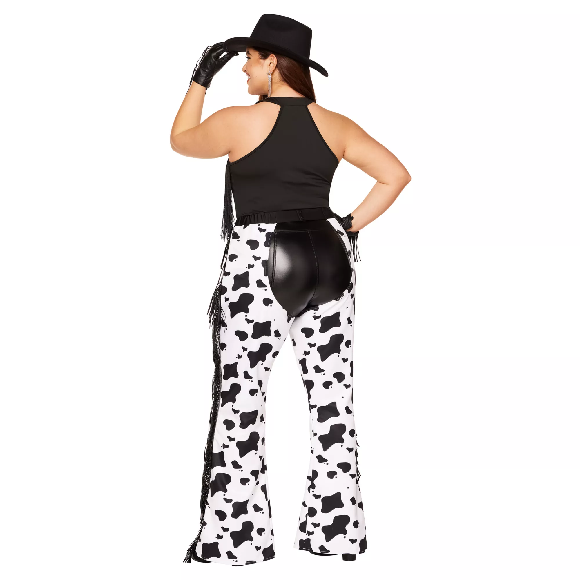 Stand out on Halloween night as the cutest cow on the farm with these Adult Cow Print Chaps! These chaps feature black and white detailing and will perfectly complete any adorable western-inspired costume. With convenient snap closure, you'll be moooooovin' and groovin' in no time.