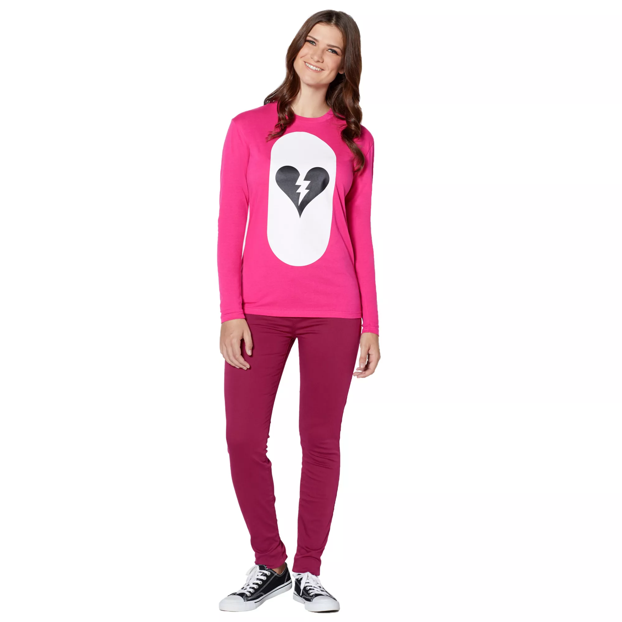 If anyone is in need of a hug this Halloween, they’ll know exactly where to head once they see you suited up in this officially licensed Fortnite Cuddle Team Leader costume tee. This comfy must-have is bright pink with a white belly and boasts the cuddle team broken heart logo in the center. Straight from the Royale Hearts set, consider this the perfect Fortnite gift for any gamer. Just grab a Cuddle Team Leader mask and you’ll be fit enough to take over Retail Row.