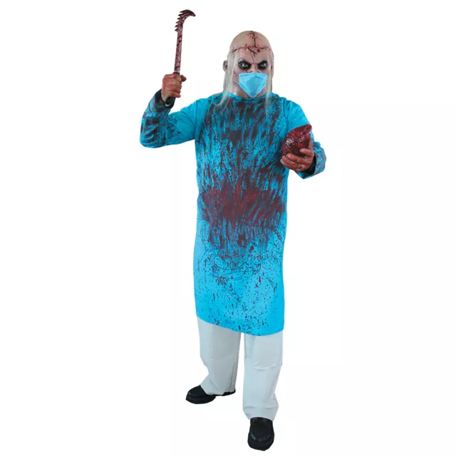 This doctor definitely has a lot of knowledge about organs - including how they taste. Transform with the Doctor Zombie Adult Costume, featuring a blue blood spattered surgical coat, mask with sinister black eyes and stitched up skull, and blue surgical mask. For extra horror, add more fake blood, a fake heart or brain, and surgical tools (all sold separately)!