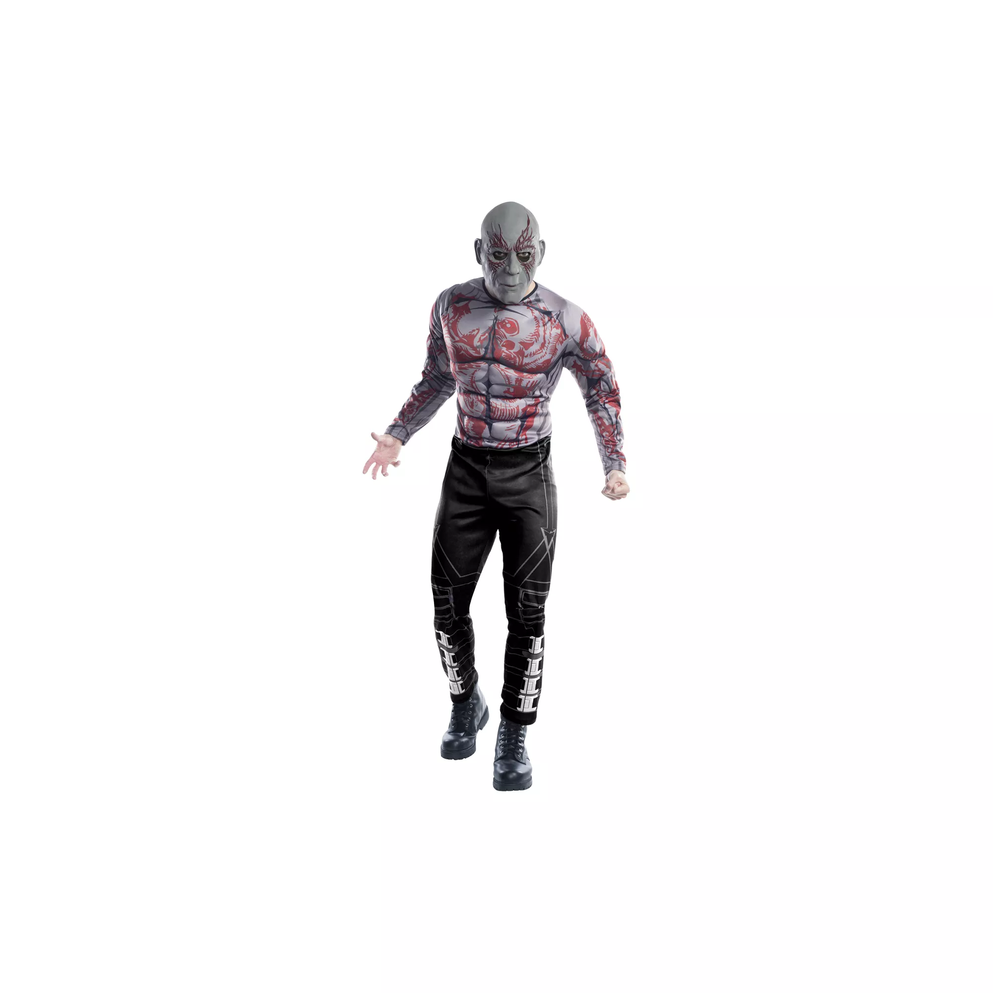 Use your strength and energy blast to power through Halloween when you wear the officially licensed Guardians of the Galaxy Drax the Destroyer Adult Men's Costume. This awesome character jumpsuit features a muscle chest and arms, complete with a character mask.