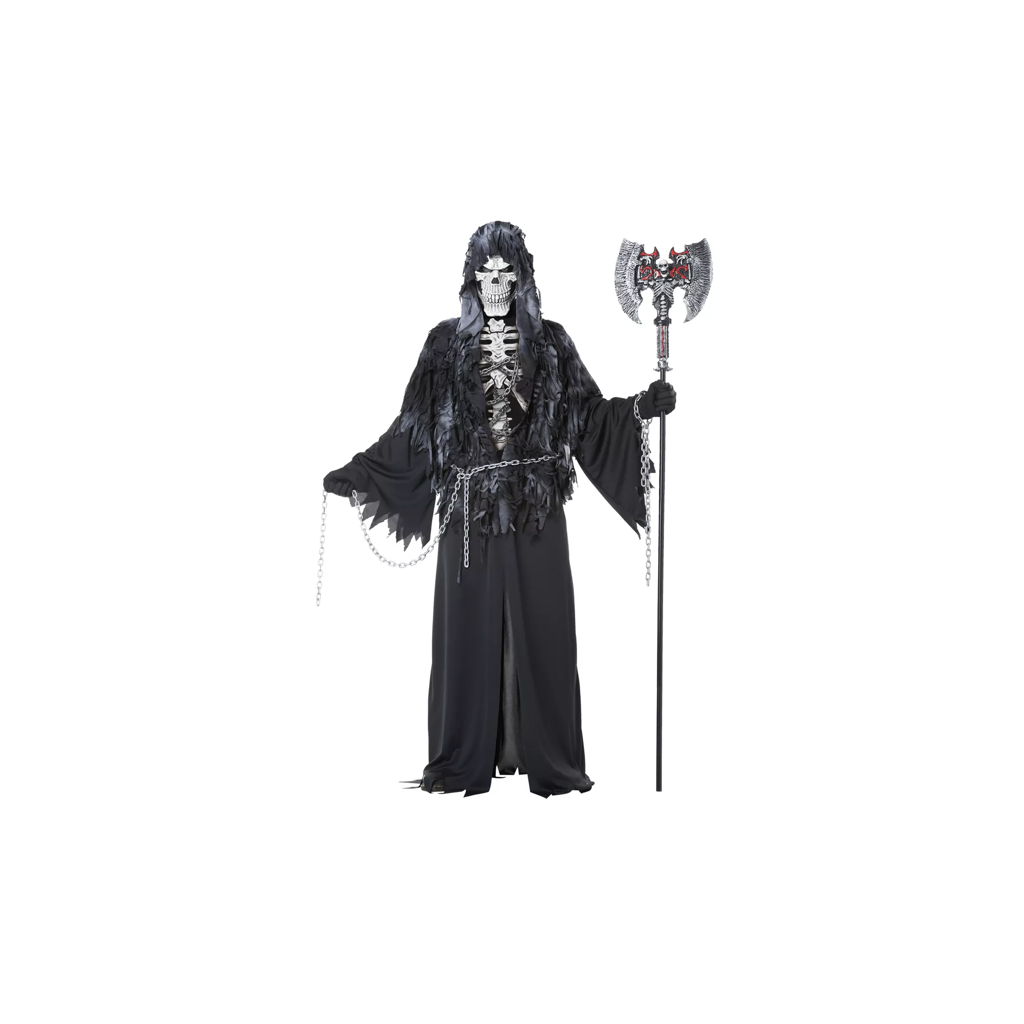 Death has never been so intimidating when you decide to dress up in the Evil Unchained Adult Men's Costume. This black robe comes complete with a character mask, hood with attached drape, waist chain and wrist chain.