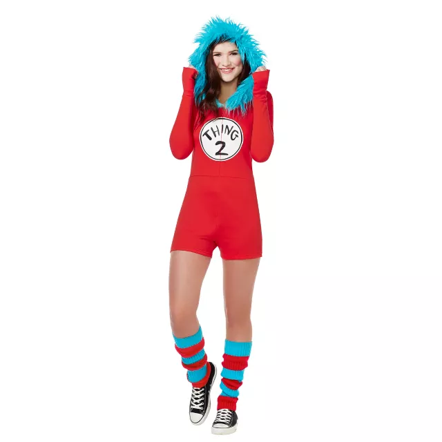 Cause some whimsical mayhem as the trouble making Thing 2! This cozy romper features a faux fur blue hood with a Thing 2 detail on the chest for a playful look that will have you rhyming all day long! It's Cat in the Hat approved!