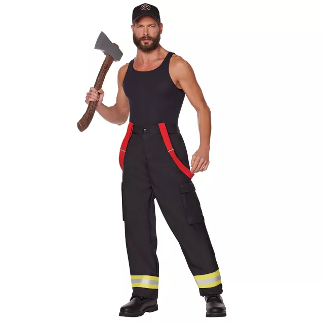 Looking for the perfect firefighter outfit? We've got you covered. This Firefighter costume kit includes pants, a hat, and suspenders, giving you everything you need to save the day!