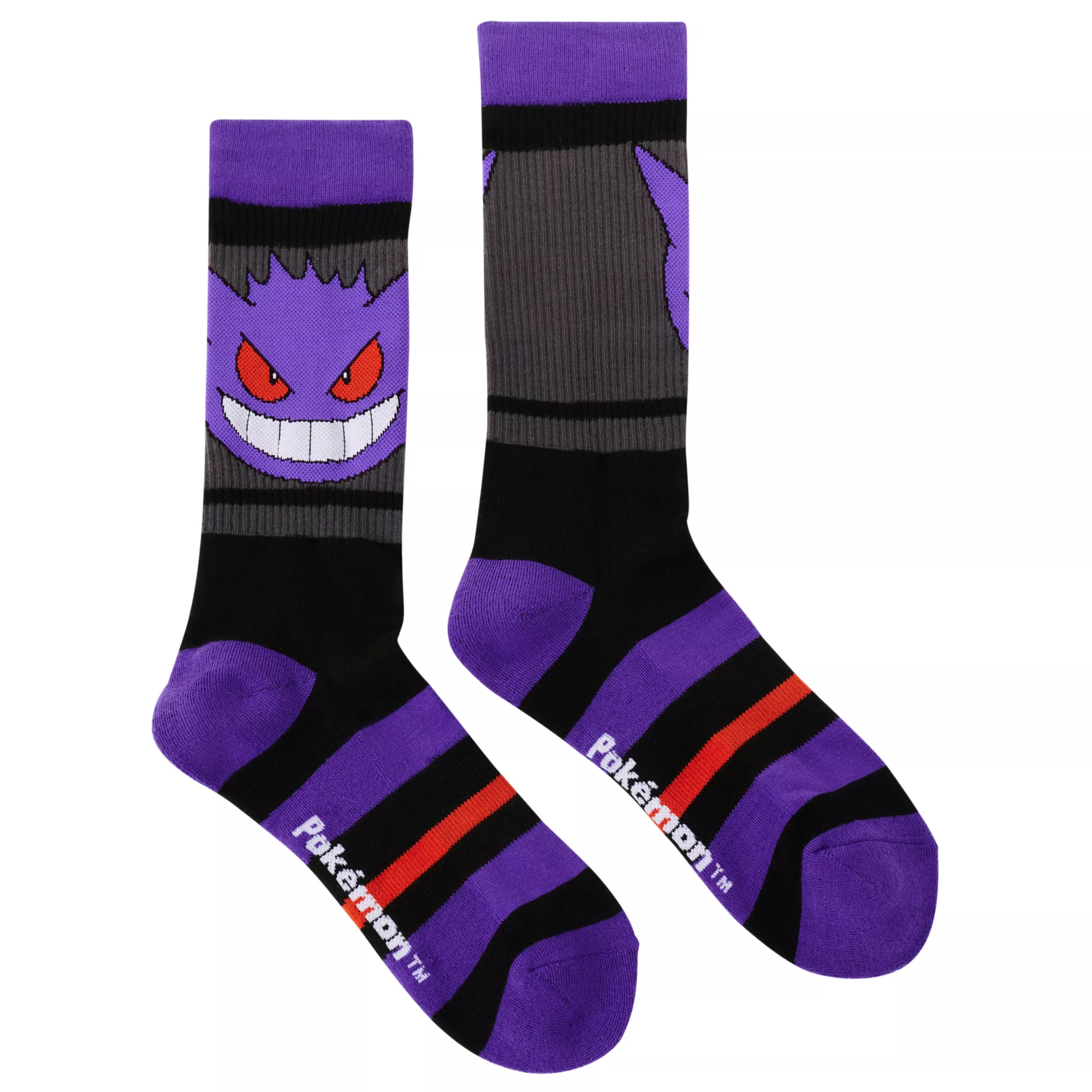 Show some love for your favorite Pokémon with these officially licensed Adult Gengar Crew Socks! Complete with Gengar's signature colors and michievous grin, these cozy striped socks make for the perfect gift for any Pokémon fan.