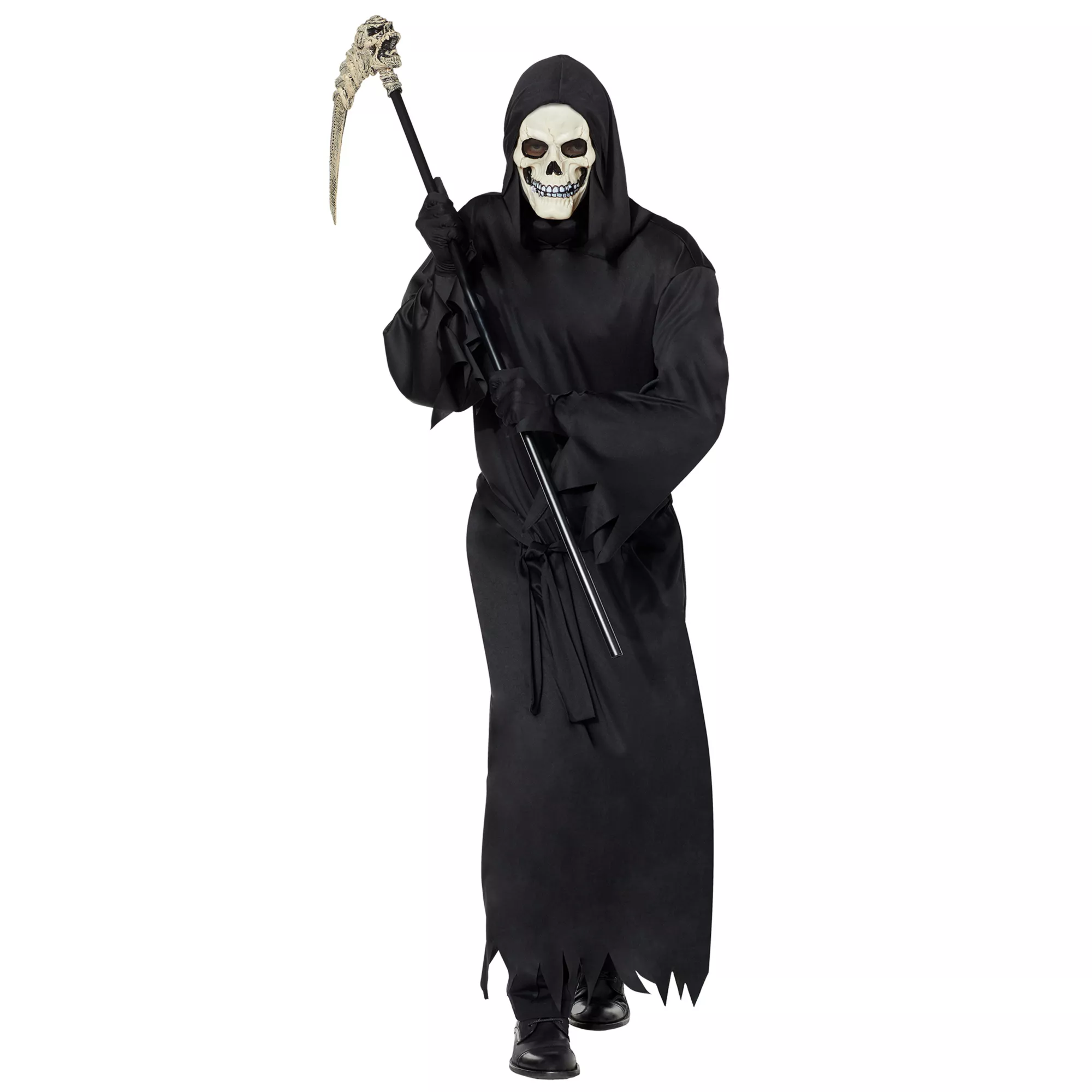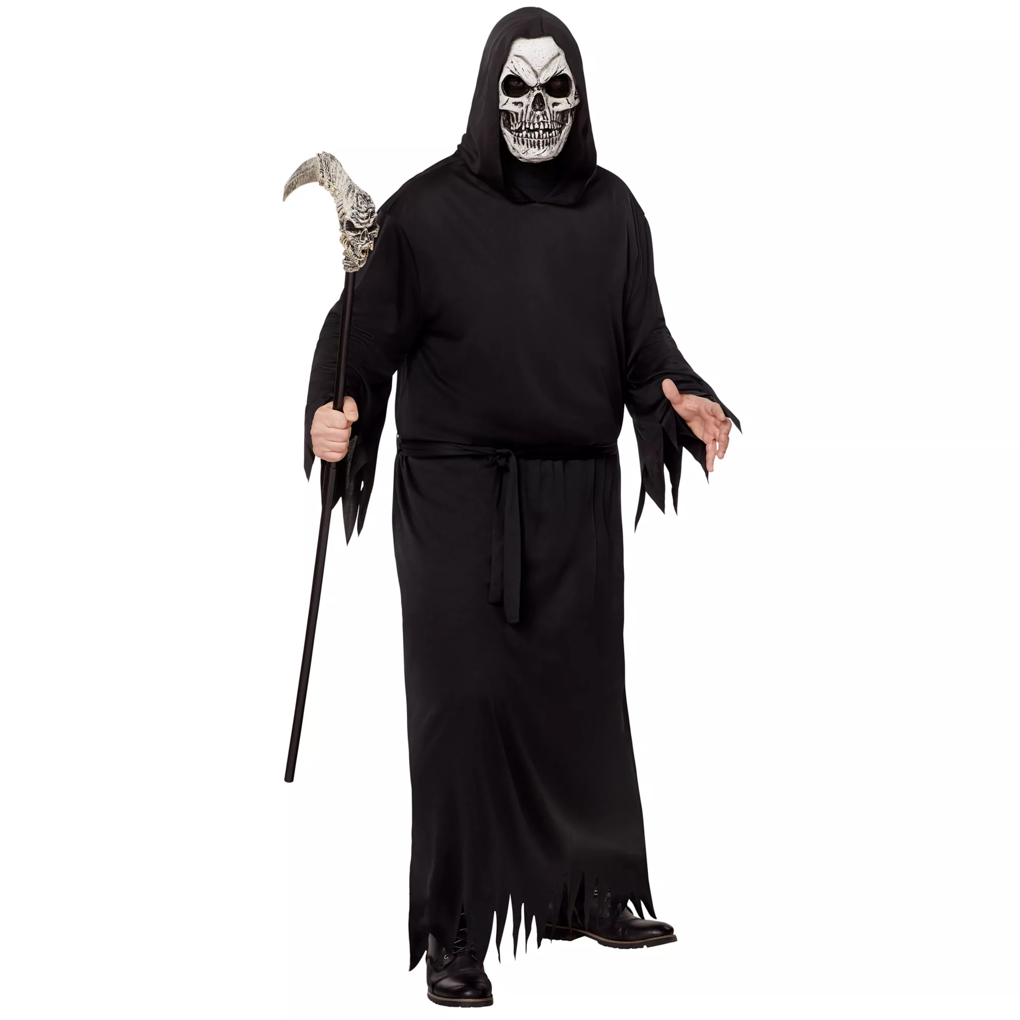 Create a dark character with this grim reaper robe! This comfortable robe features a jagged hemline and a hooded detail that will keep you creepy all night long!