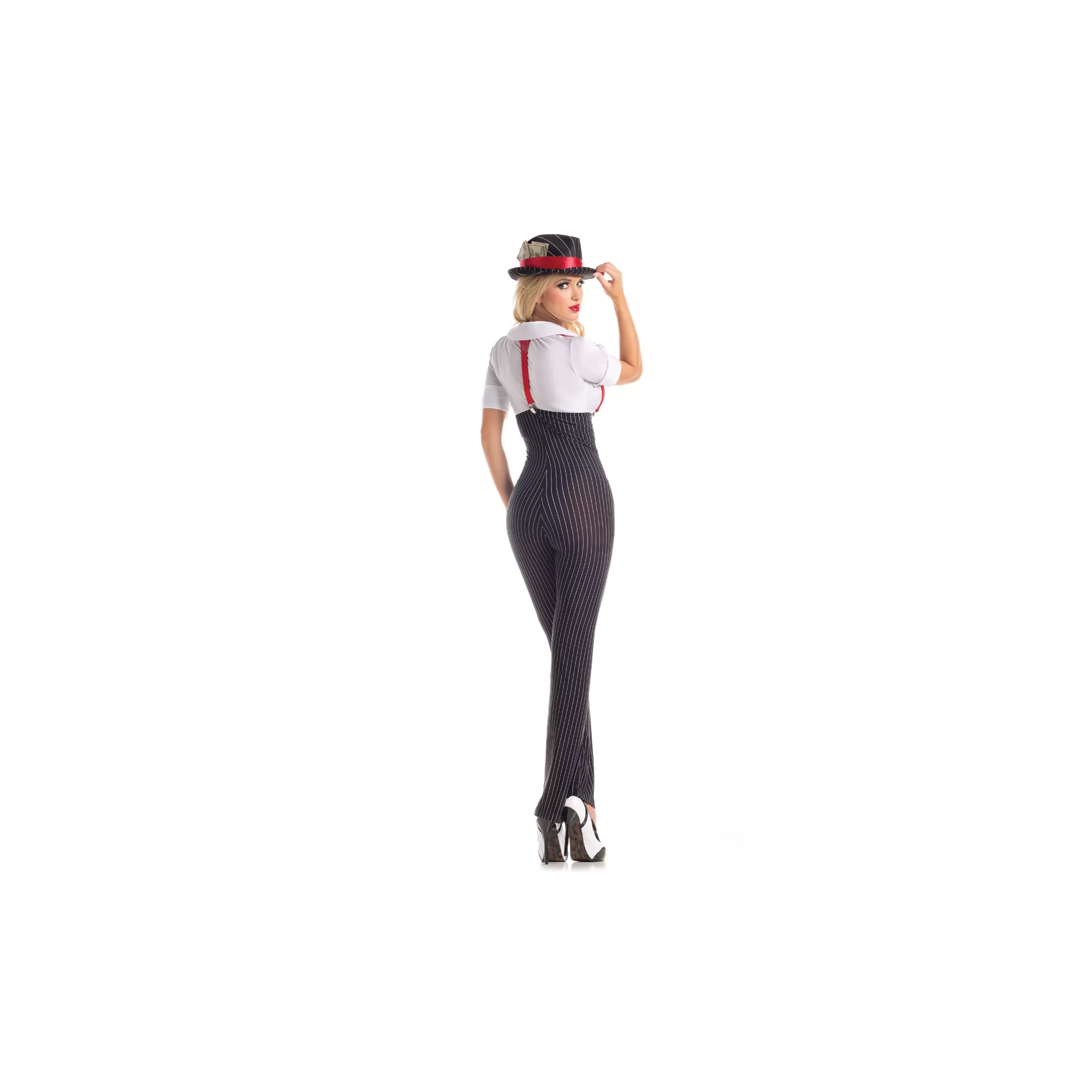 It's criminal to look this good. In the Heist Hottie Gangster Adult Women's Costume you'll rock a throwback gangster look with a sexy twist. Features cropped white shirt with alluring key-hole, red tie and pinstriped high-waisted pants.
