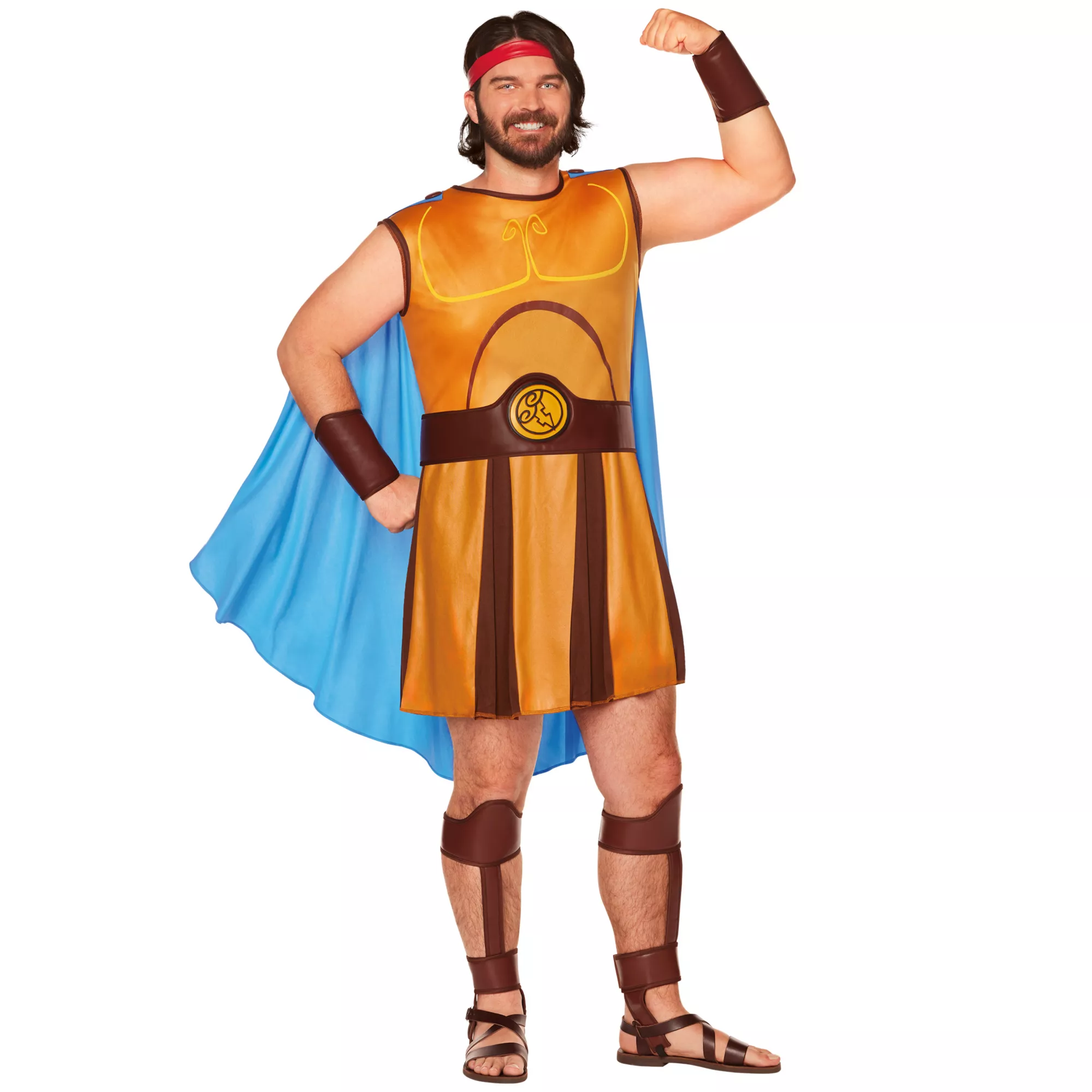 This officially licensed Adult Hercules Costume will take you from zero to hero in seconds! Dress up as your favorite Disney character when you slip into this tunic with an attached cape, and included headband, belt, armbands, and leg wraps.