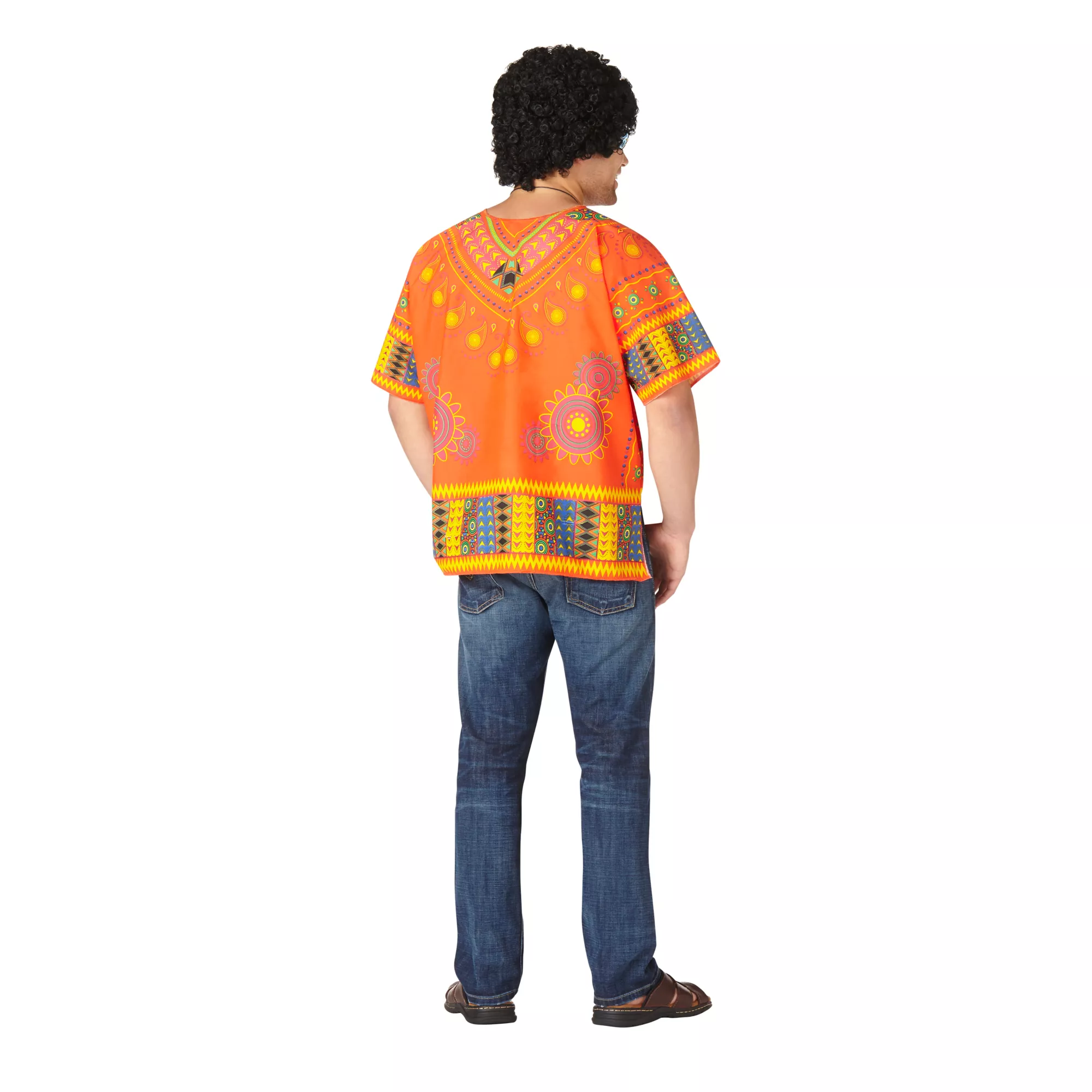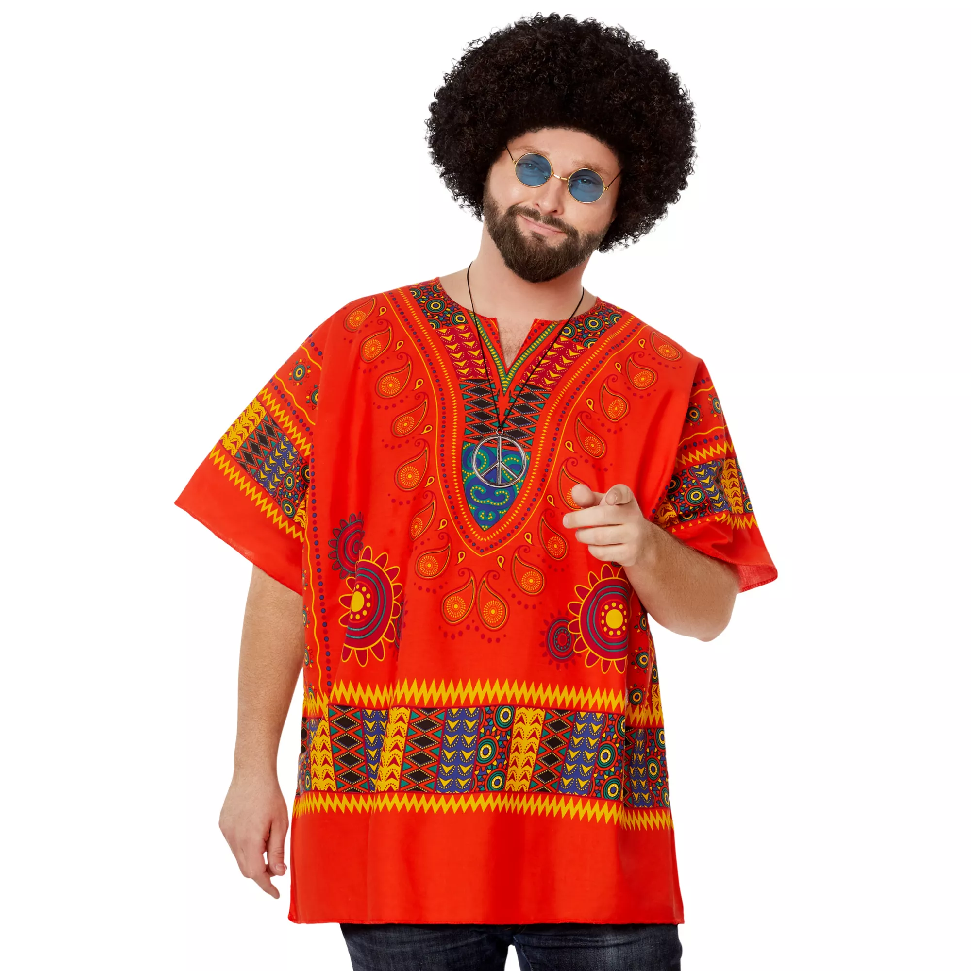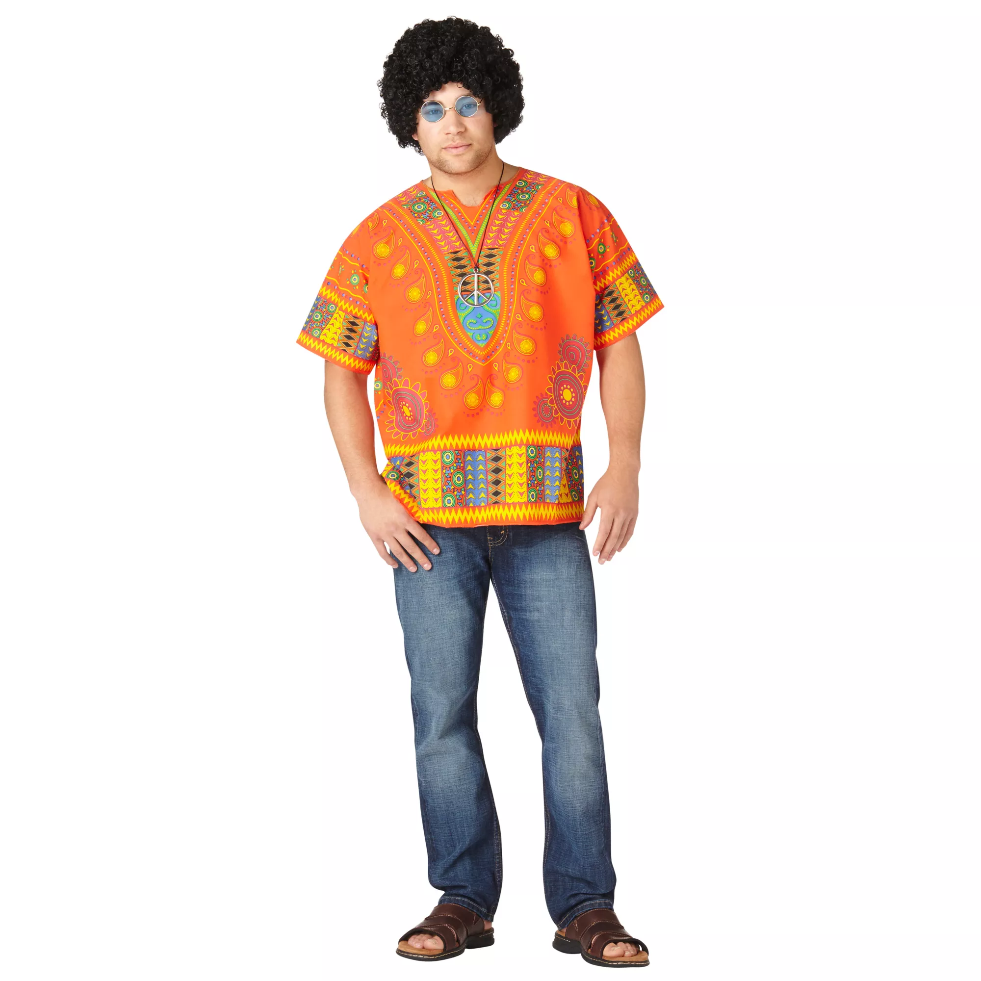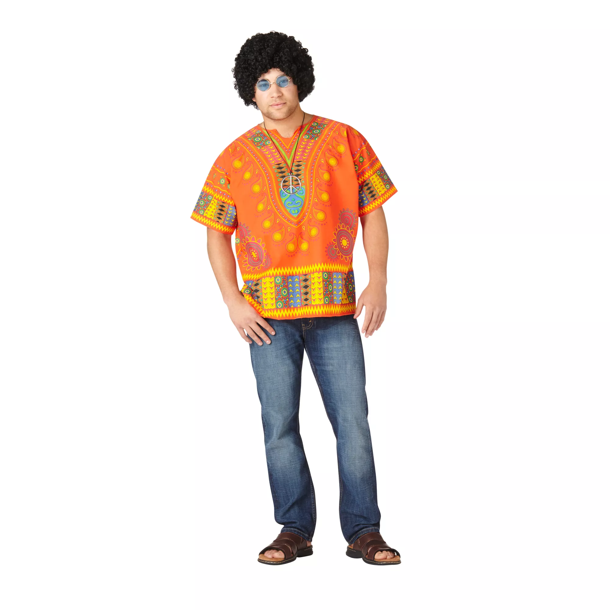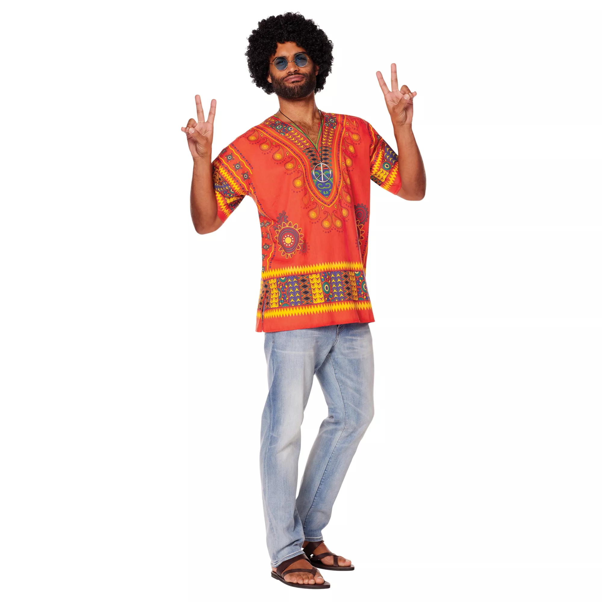 Show off your groovy side with this awesome hippie costume! Featuring a brightly colored shirt, wig afro, vintage glasses, and a peace sign necklace, this costume is perfect for anyone who wants to look as though they've traveled in time just to party!