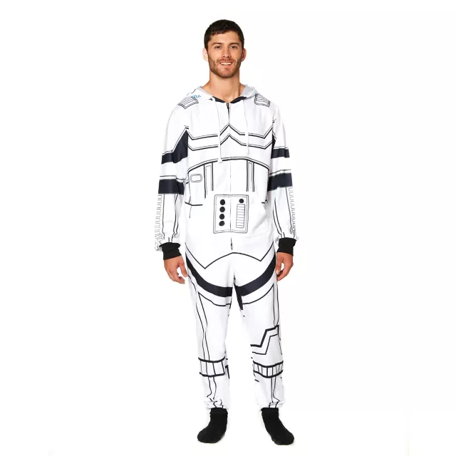 Be a part of the Star Wars universe by wearing the officially licensed Storm Trooper Union Jumpsuit and working under the Galactic Empire's command. The white hooded jumpsuit features pockets, a front zipper closure, and a Storm Trooper suit graphic all over.