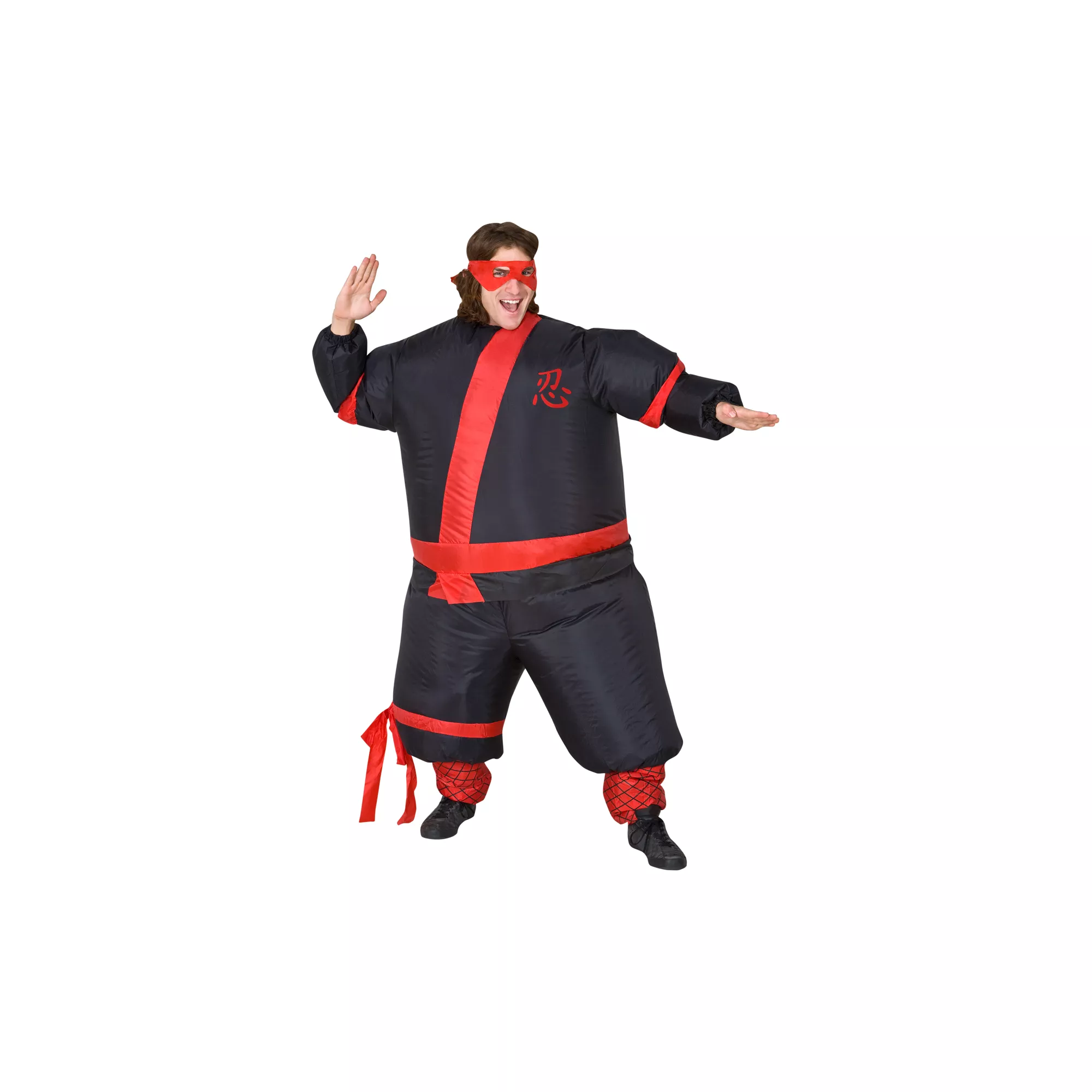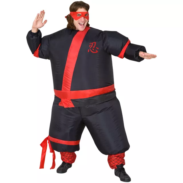 Hi-ya! The Inflatable Ninja Standard Adult Costume is brilliant at bringing the laughs this Halloween. This inflatable ninja costume features a battery operated fan (batteries not included) that keeps you afloat all night long. Add to this comical look with the matching red eye mask and pose comically for a night you'll never forget.