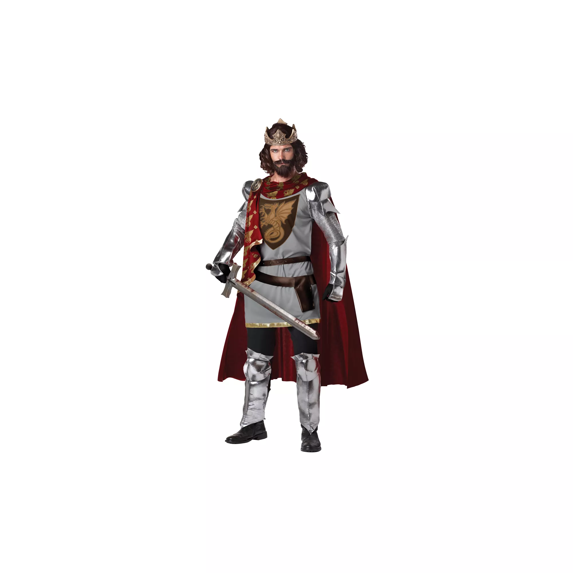 All hail to the great King Arthur! Women will swoon and men will salute you as you enter the room in this regal ensemble. The King Arthur Adult Mens Costume is a grand affair - it's fun to rule on Halloween so wear it wisely and well.