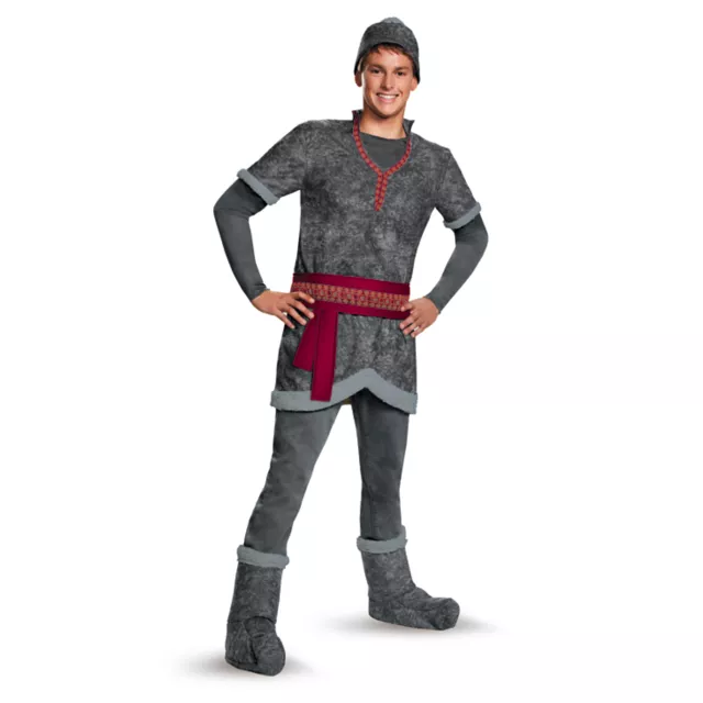 In the officially licensed Frozen Kristoff Adult Men's Costume, you'll be ready to harvest ice or go on an adventure with Anna and Sven! The textured gray tunic features red details around the neckline and lighter gray borders on the sleeves and bottom of the tunic. The included red sash also adds a unique pattern, and the matching gray boot covers and hat will help protect you if Elsa starts a snow storm! Accessorize with a pickaxe or Sven doll (both sold separately)!