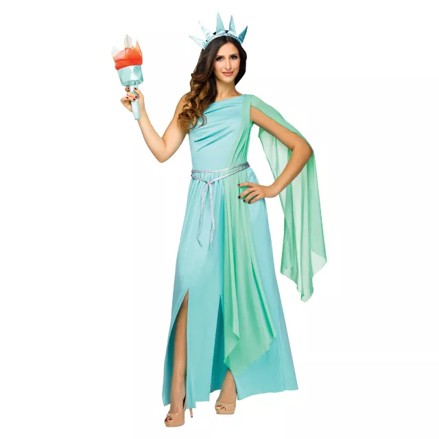 What better way to spend Halloween than as Lady Liberty herself! Show off your national pride with this pretty and patriotic costume. This look includes everything you need be just as stately as the Statue of Liberty! Go USA!