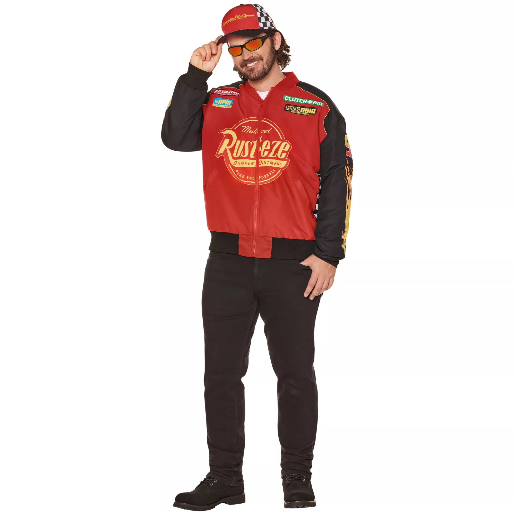 Get ready to race in this officially licensed adult Lightning McQueen costume! Cars fans, buckle up for serious Halloween fun in this movie-inspired jacket with red and black details, a front zipper closure, and authentic patches. Complete the race-ready look with a Lightning McQueen baseball cap!
