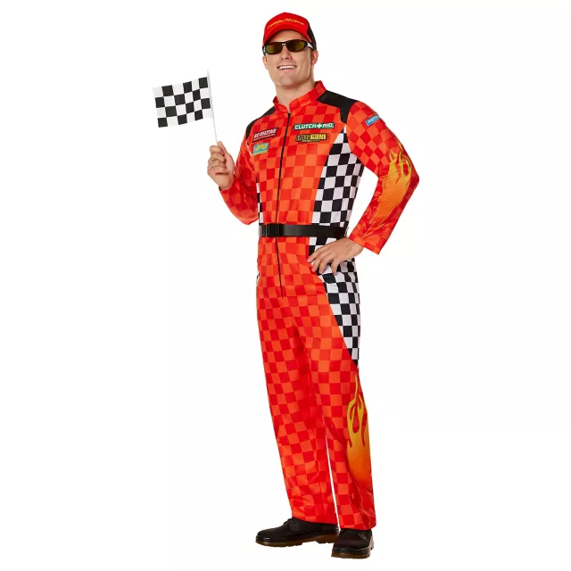 Look like you’re ready to race fast in this Cars Lightning McQueen costume! This fun costume includes a Lightning McQueen red jumpsuit with black and white checkered sides, complete with belt plus matching hat. Make this a very exciting Halloween when you dress up in this Cars costume.