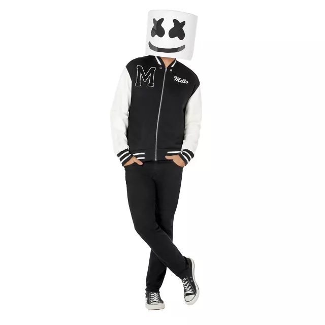 This officially licensed Adult Marshmello Jacket is the missing piece to your Halloween costume. Everyone will want to go as Marshmello. This black and white jacket has a white M on the front, and Marshmello's logo on the back and sleeves.