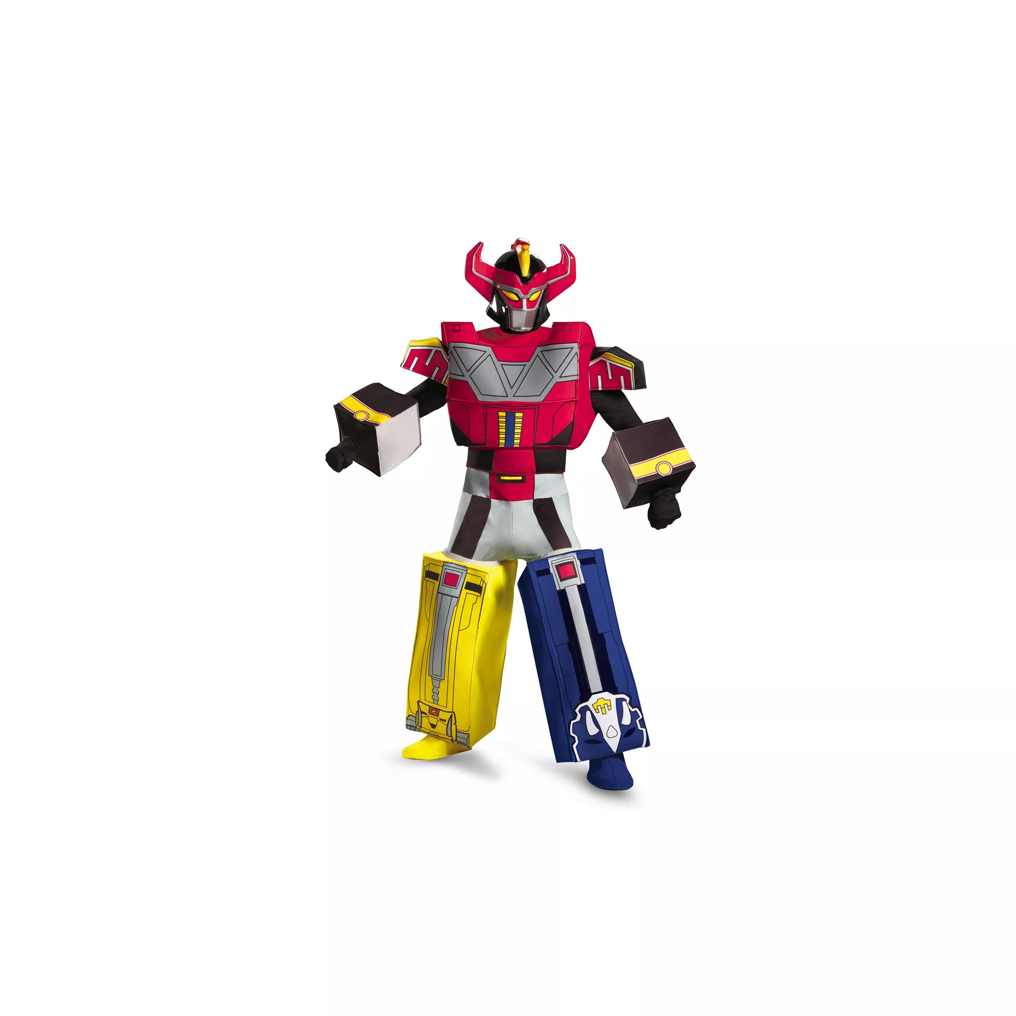 Power up and battle the bad guys on Halloween when you dress in this officially licensed Power Rangers Megaforce Megazord Prestige Costume. The character jumpsuit comes complete with a 3D chest piece, boot covers, gauntlets with attached gloves and a character helmet.