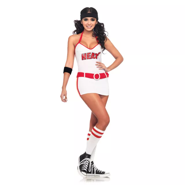 Heat things up in the officially licensed Miami Heat Dress adult womens costume. They'll jump through hoops at the sight of you in this totally hot, red and white logo dress, complete with matching athletic knee socks. This outfit is your best shot on Halloween!