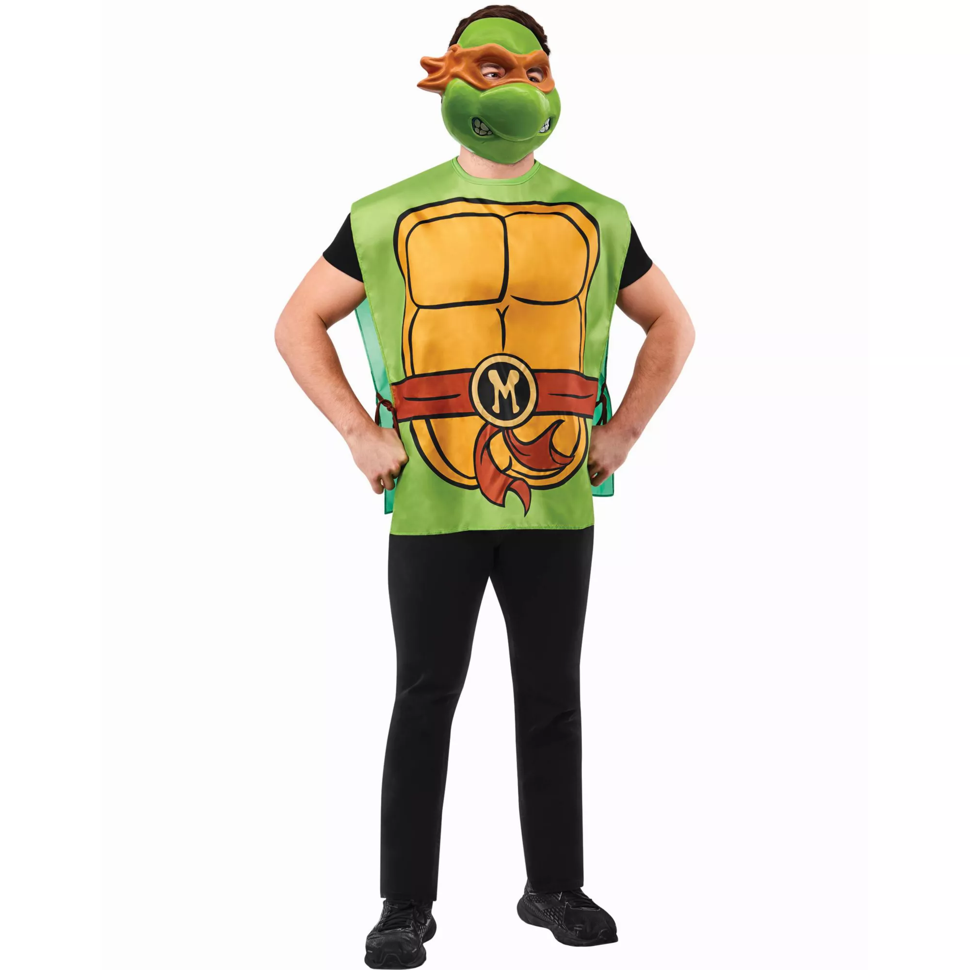 "We're lean, we're green, and we're mean!" Transform into a Teenage Mutant Ninja Turtle this Halloween when you wear this officially licensed Michelangelo costume kit. Featuring an epic half mask and tabard costume top, this costume is sure to show off your love for the legendary movie.