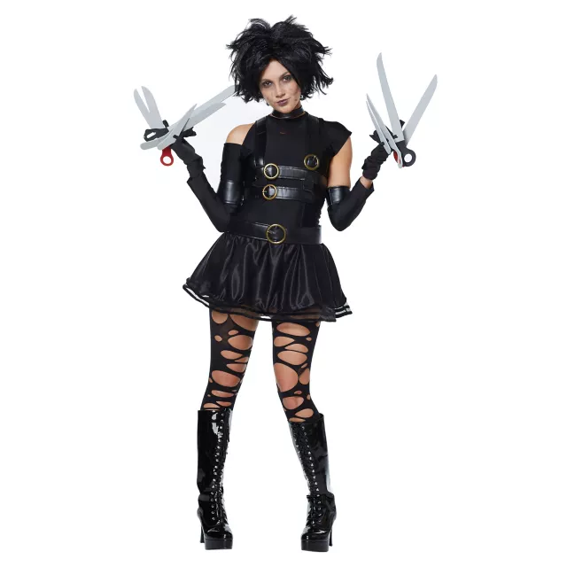 Whether you're transforming the hedges or whipping up some wild hairdo's, you'll be just as chilling and charming as the iconic Edward Scissorhands! This look has everything you need to transform yourself into the silent sweetheart like the exquisitely detailed mini dress, character wig, and of course the iconic scissor gloves. Show everyone just how gentle you can be in this officially licensed look!
