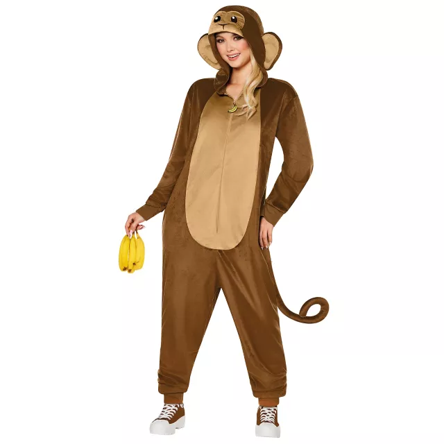 Go bananas in this cozy monkey jumpsuit! This zip-up jumpsuit features super-soft material, an attached hood with a monkey face and ears, and an attached tail.