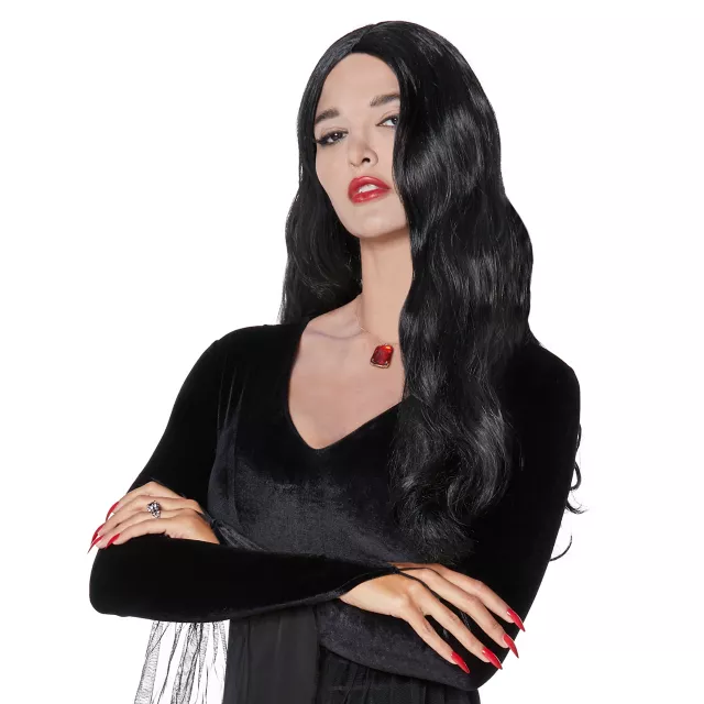 Morticia Addams is notorious for her long, dark tresses, and now they can be yours! You'll look just like the leading lady of the Addams family when you slip into this dramatic Morticia Addams wig.