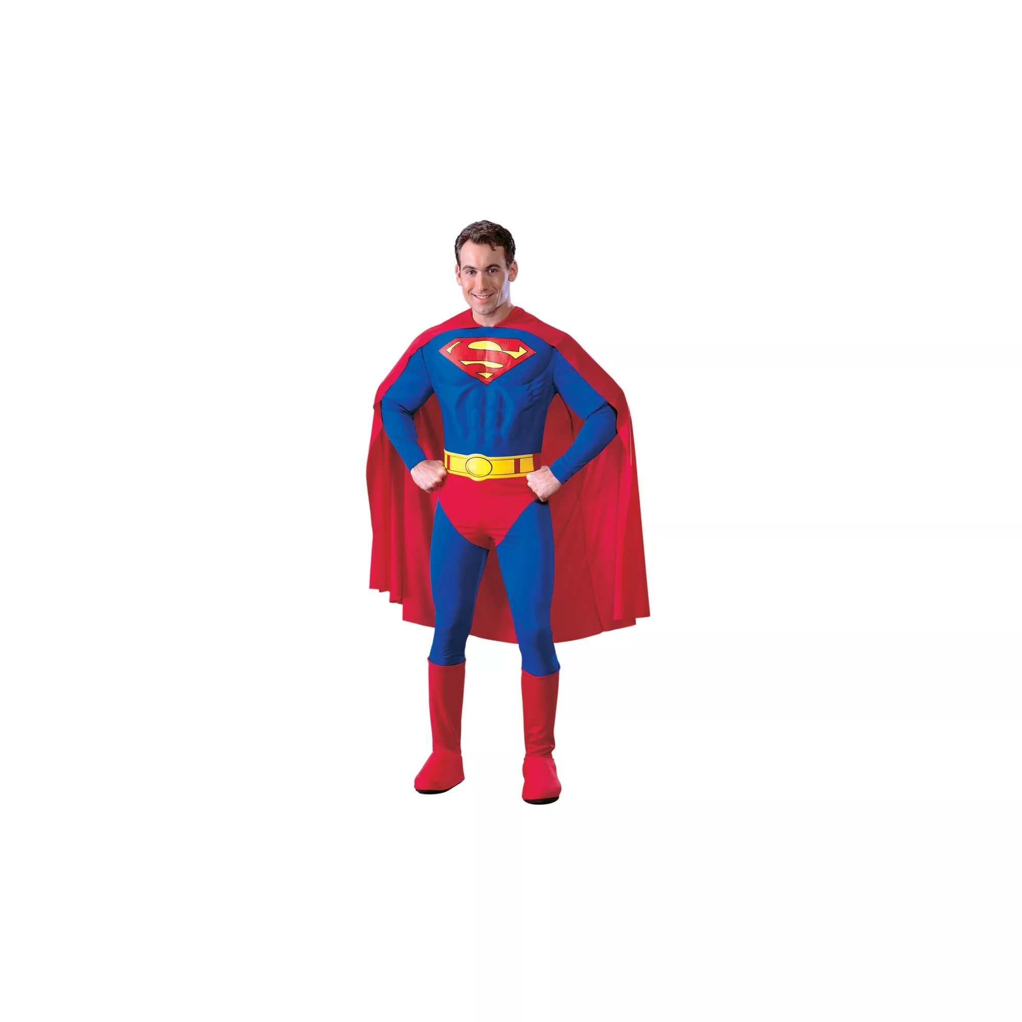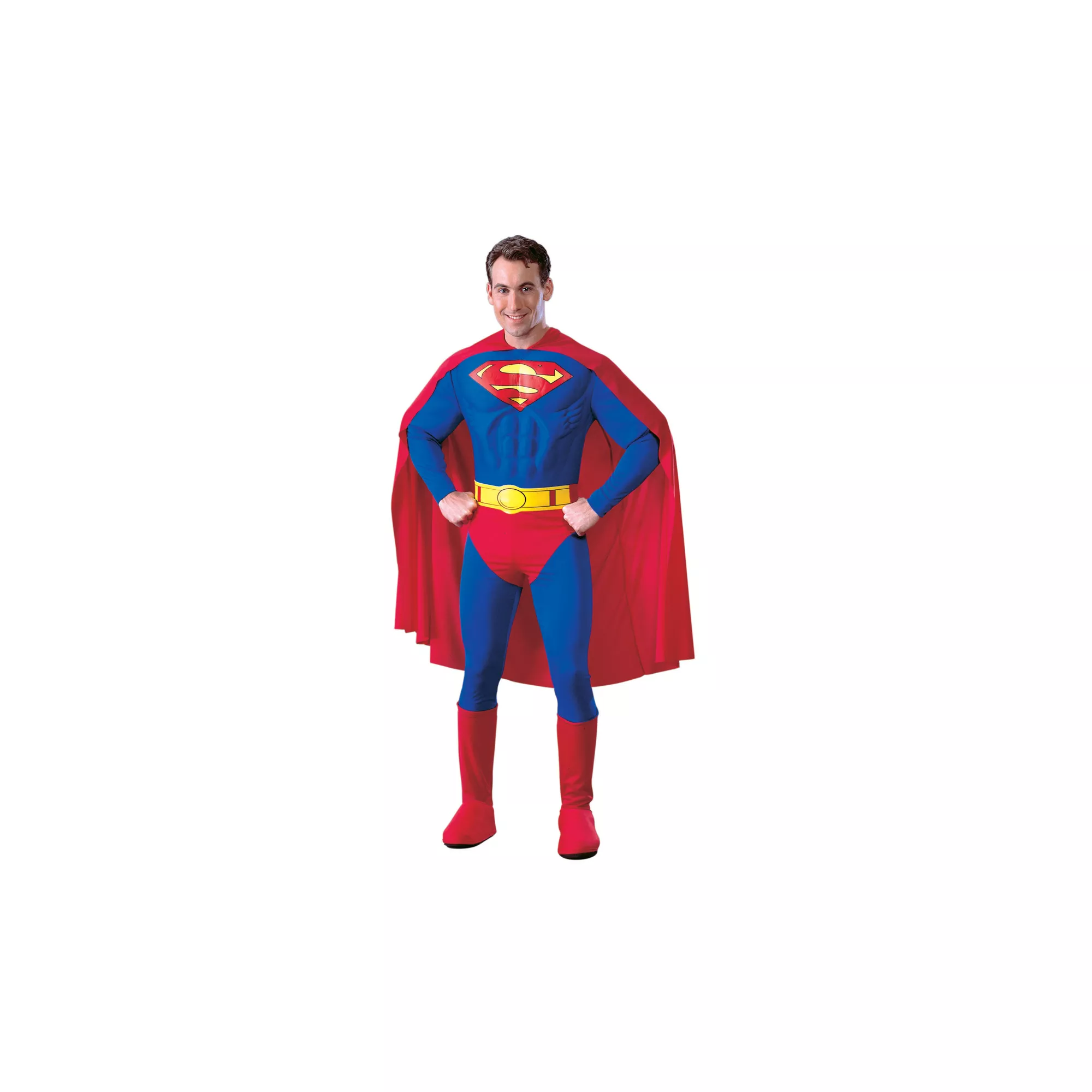 It's a bird! It's a plane! It's... Superman in this amazingly realistic muscle costume, which includes superhero detailed jumpsuit and flowing red cape, not to mention the super boot covers and genuine belt, just like in the movies!